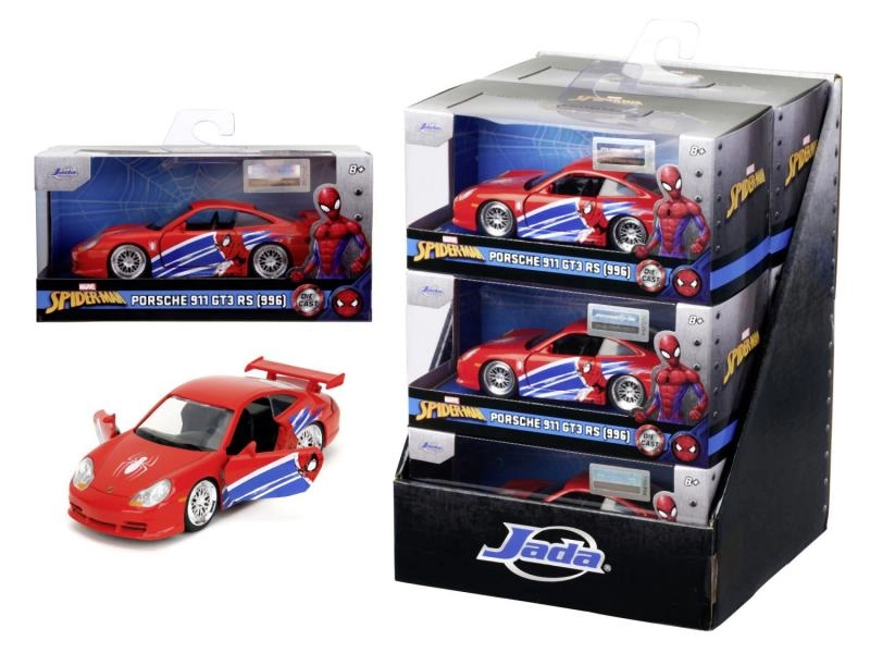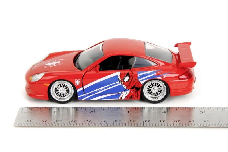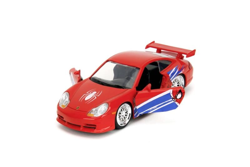 Geniet van rit vol actie met dit verzamelmodel van de Porsche 911 GT3 RS met MARVEL Spider‑Man-thema. Metalen die‑cast met precieze details, blauw‑witte strepen en een grote achterspoiler zorgt voor een realistische en duurzame uitstraling. De schaal van 1:32 en een lengte van circa 13,5 cm maken hem ideaal voor in de vitrinekast of kinderkamer.