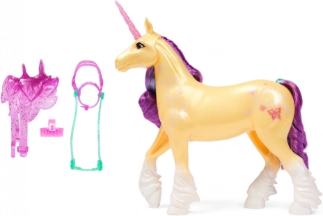 Ontdek de magie van de Unicorn Academy-wereld met eenhoorn Leaf! Deze ongeveer 24–28 cm grote figuur, geïnspireerd op de NETFLIX-serie, heeft een glinsterende hoorn, parelmoeren tekens van plantenmagie, kleurrijke manen en staart en een afneembaar hoofdstel en zadel. Met een zachte hoofdbeweging komt zijn persoonlijkheid tot leven en kunnen kinderen het magische vriendschapsband met berijdster Ava opnieuw beleven.