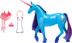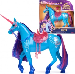 Ontdek de magie van de serie Unicorn Academy met de eenhoorn River van 24 cm. Deze prachtige speelgoedfiguur, geïnspireerd door de heldinnen van NETFLIX, betovert met een glinsterende hoorn, parelmoeren symbolen van watermagie en een volle manen en staart om te borstelen. Inclusief een afneembaar halster en zadel voor nog meer speelmogelijkheden. Een zachte beweging van het hoofd laat haar persoonlijkheid tot leven komen, zodat kinderen het magische band tussen rijdster Isabel en haar eenhoorn eenvoudig kunnen herbeleven.