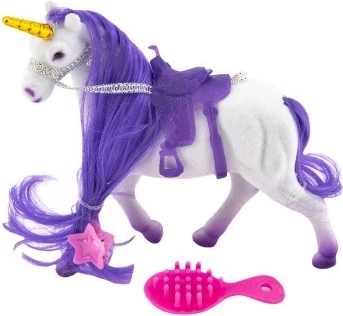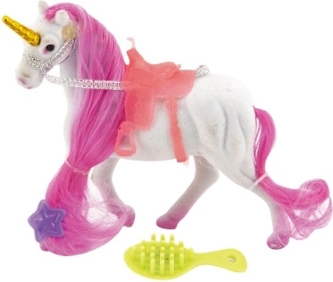 Deze elegante eenhoorn maakt elk kind blij dat houdt van magische wezens en de fantasiewereld. Dankzij de zachte, fluweelachtige afwerking en de kammbare manen beleven kleine kappers veel creatieve pret. Er zijn ook accessoires voor het verzorgen van de manen en een zadel voor comfortabele ritjes in de verbeelding.