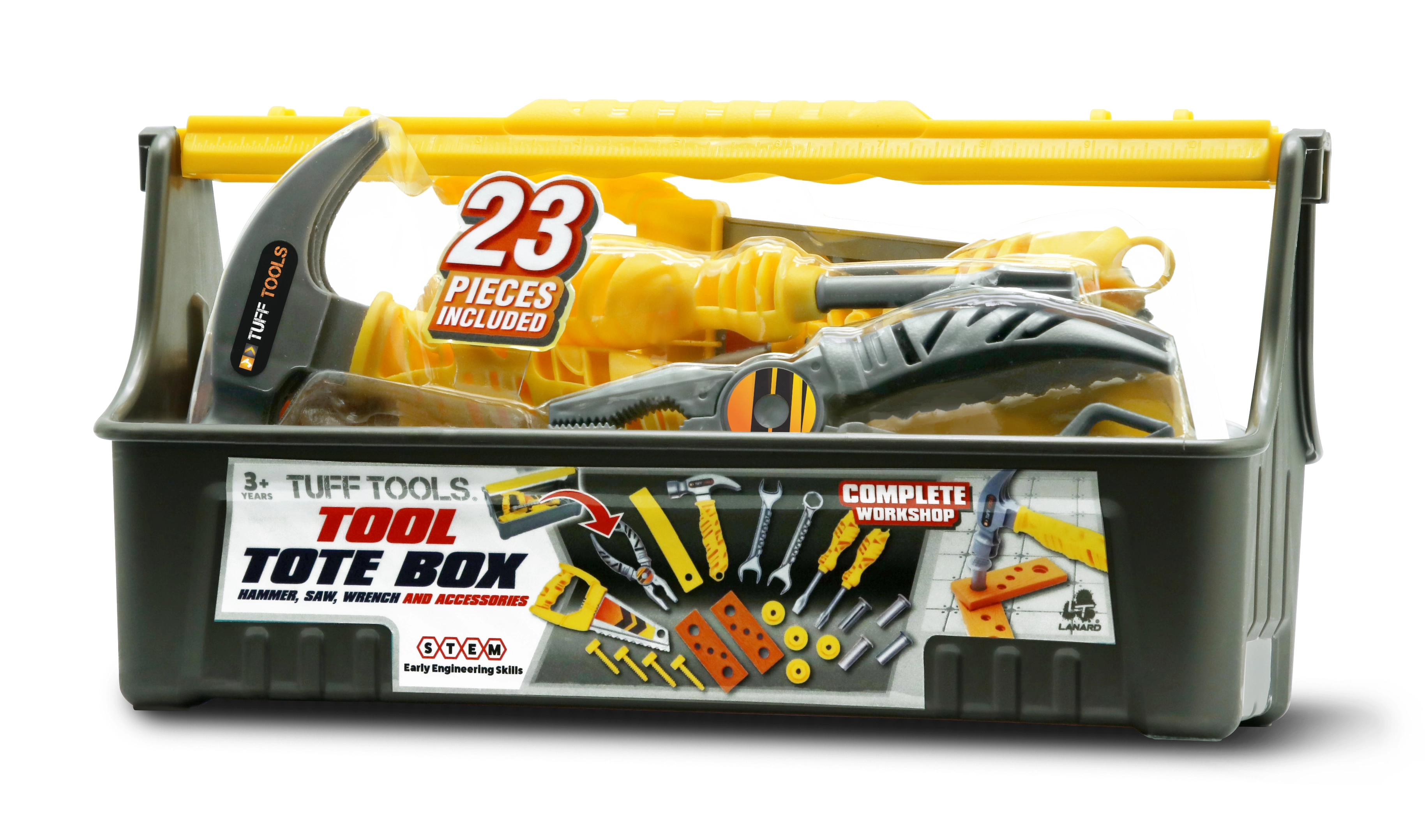 Berg alles op in de stevige box met handvat en neem je werkplaats overal mee naartoe. 23-delige uitrusting voor eindeloos spelen en leren.