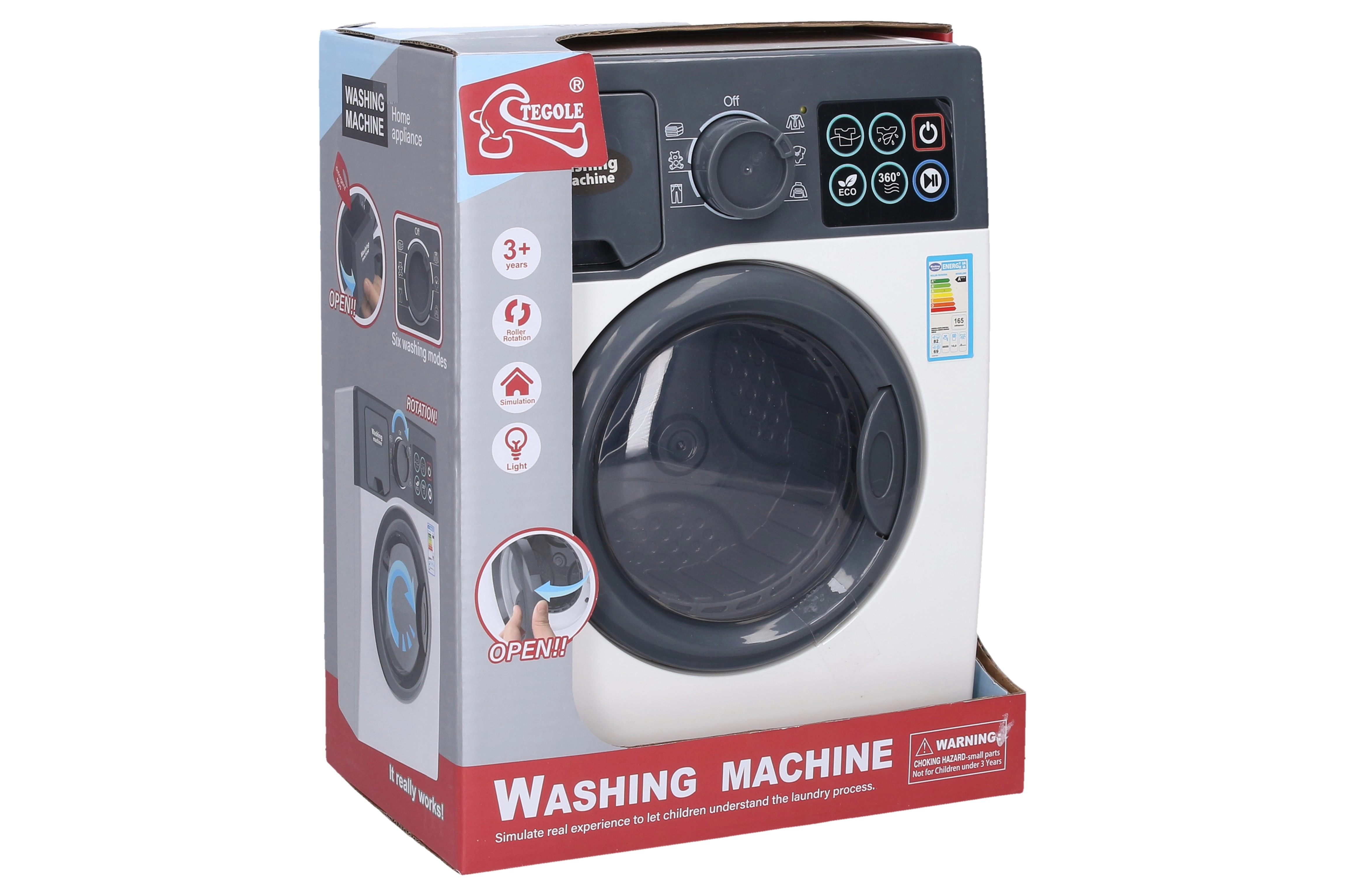 Deze kinderwasmachine biedt een authentieke waservaring in een veilige en leuke vorm. Druk gewoon op de aan/uit-knop, kies een programma en start de was met de go/stop-knop. Dankzij de effecten bootst hij de werking van een echte wasmachine na en stimuleert hij de fantasie en motorische vaardigheden van kinderen.