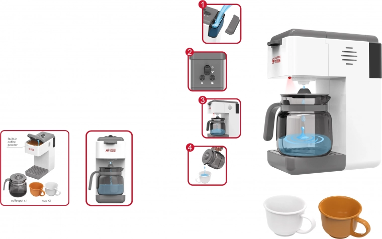 Ontdek dit leuke kinderkoffiezetapparaat met kan, dat echt koffiezetten simuleert. Vul simpelweg het reservoir met water en het apparaat vult automatisch de kan. Dankzij de licht- en geluidseffecten is het spel nog realistischer, terwijl de on/off-knop zorgt voor eenvoudige bediening, ook voor jongere kinderen.
