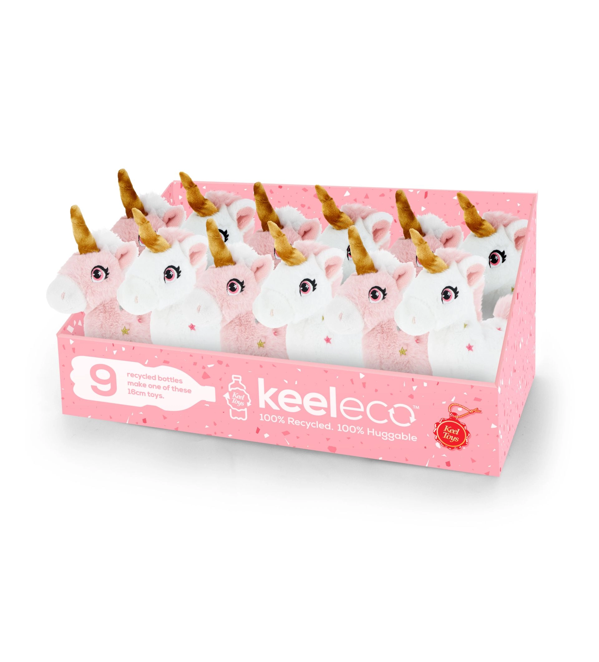 Een schattige witte eenhoorn uit de KEELECO-collectie van KEEL TOYS die kinderen én ouders blij maakt dankzij de duurzame uitvoering. De hele knuffel is gemaakt van 100% gerecyclede kunststoffen, onweerstaanbaar zacht, veilig en ideaal om mee te knuffelen. Slechts 9 gerecyclede PET-flessen zijn nodig om deze eco knuffel met betoverende uitstraling en prachtige ogen te maken.