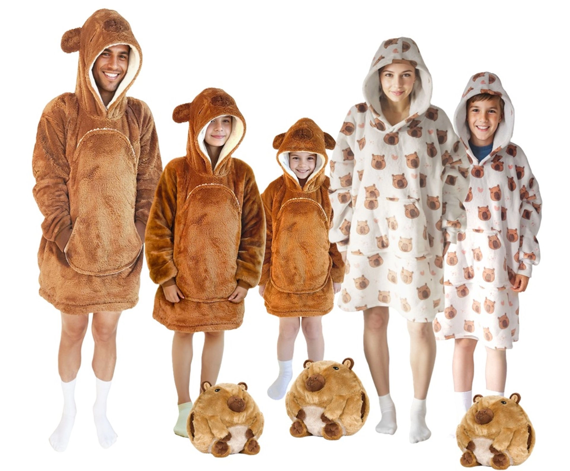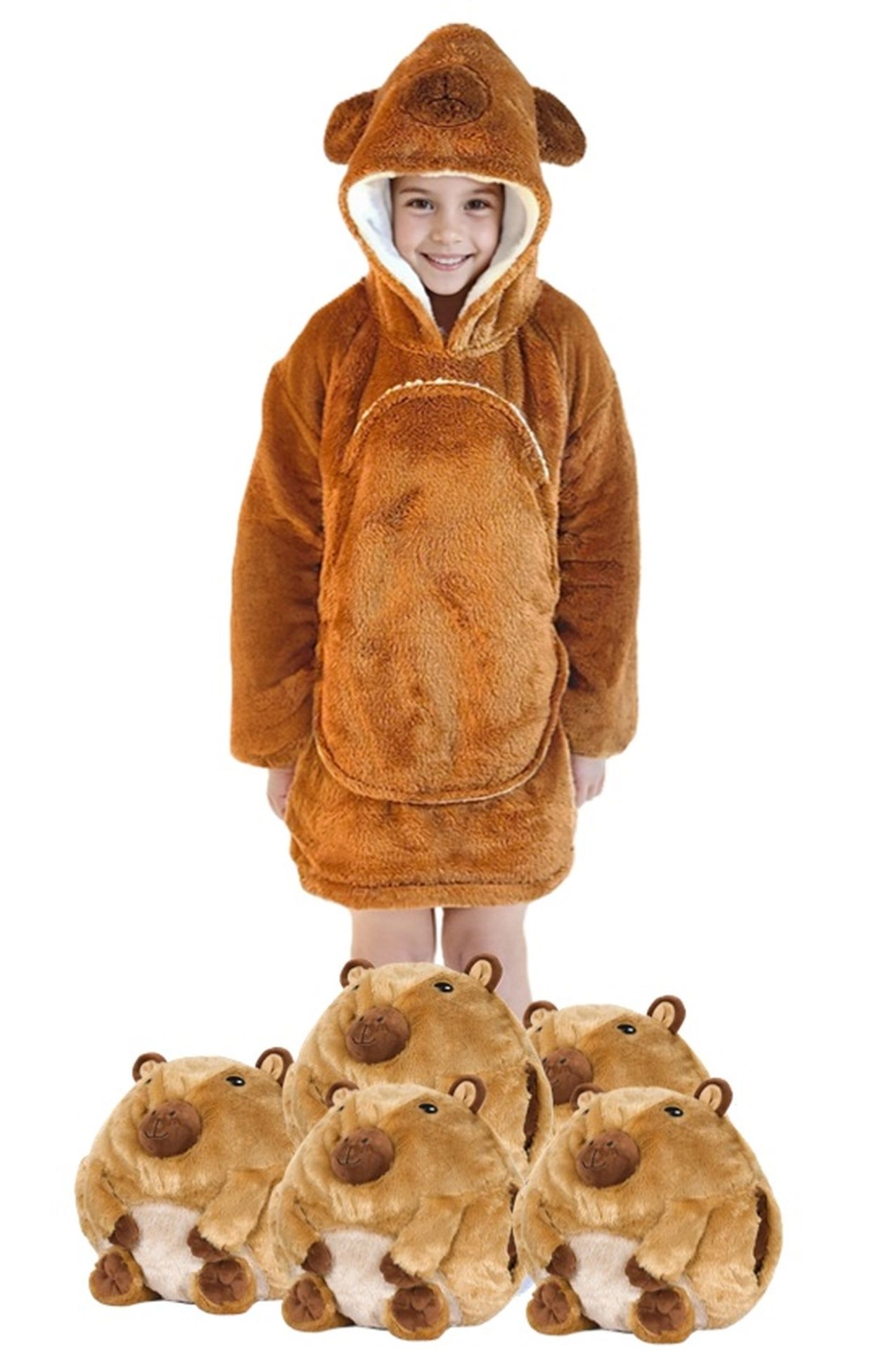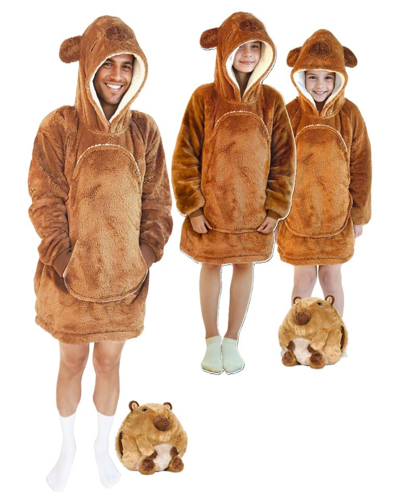 Geef kinderen maximaal comfort met deze hoodie-deken met capuchon in de stijl van een schattige capibara. Combineert superzachte flanel en warme sherpa-fleece, heeft een oversized pasvorm voor vrije beweging en een extra grote buidelzak om de handen te verwarmen. Ideaal voor bankhangen, spelen en kamperen bij koeler weer.