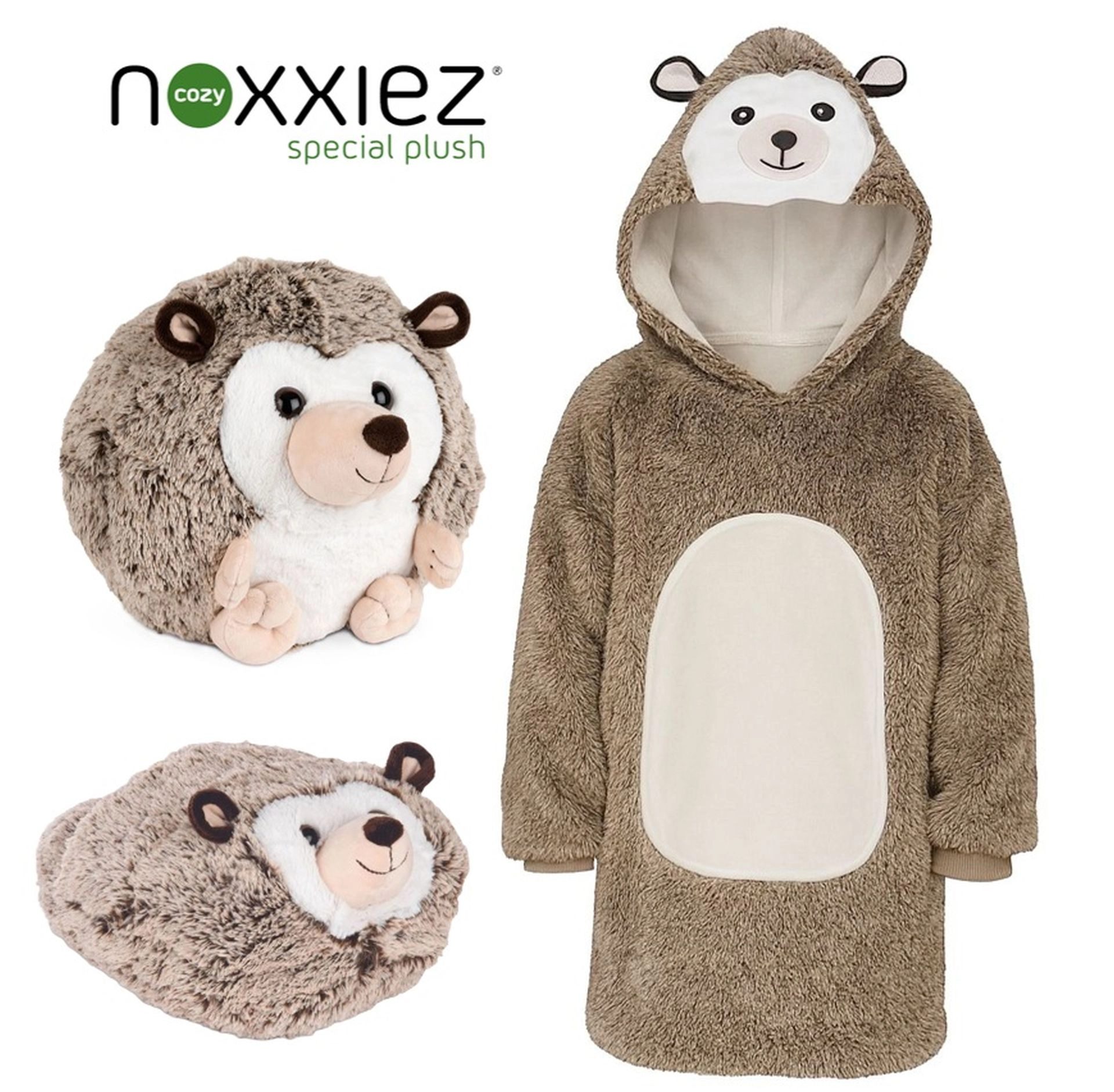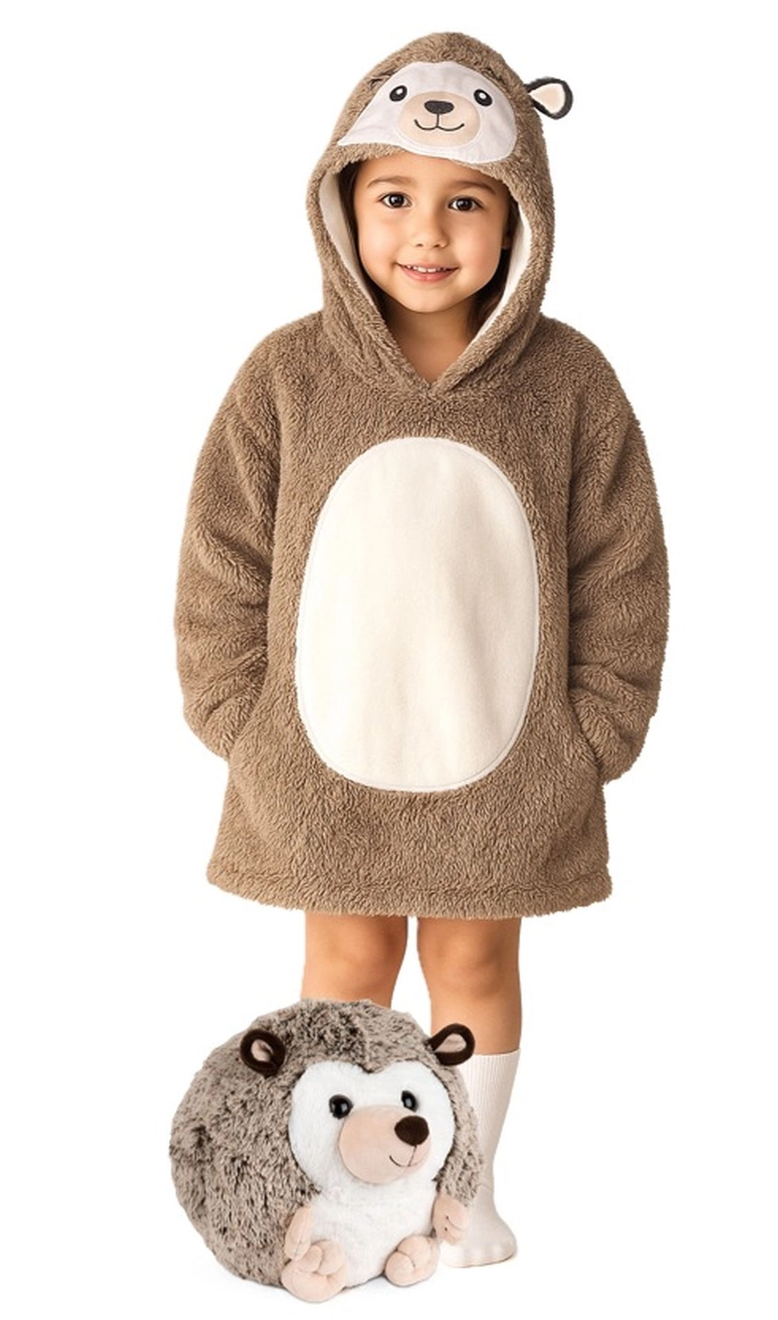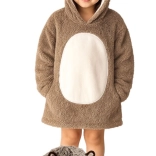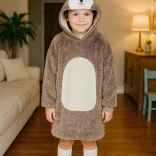 De praktische grote capuchon met dierengezicht houdt hoofd en oren warm, terwijl de ruime voorzak handjes warm houdt en kleine spulletjes bewaart. De lengte tot aan de knieën en de losse, oversized pasvorm zorgen ervoor dat kinderen het overal behaaglijk hebben.