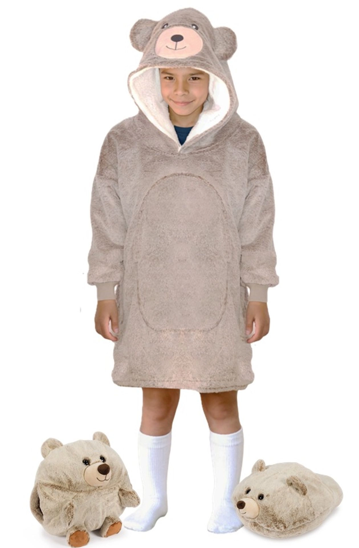 De grote capuchon met berenoortjes en de speelse look maken van deze hoodiedeken een favoriet bij kinderen – stijlvol én functioneel.