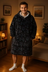 De warme hoodie-deken met gamingprint is gemaakt voor ultieme ontspanning. De buitenkant van flanel voelt heerlijk zacht aan, terwijl de binnenkant van sherpa-fleece zorgt voor luchtige warmte zonder onnodig gewicht. Dankzij de universele oversized pasvorm beperkt hij je niet in je bewegingen en zit hij perfect bij zowel tieners als volwassenen.