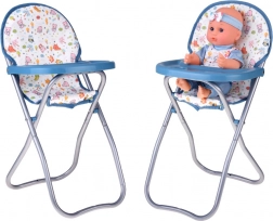 Stabiele, opklapbare stoel met blad en plek voor kom en bestek. Ondersteunt realistisch spel met voeren en tafelen met de pop.