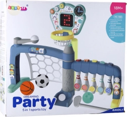 De multifunctionele 5-in-1 sportset is een modern speelgoed dat kinderen veel beweging en plezier biedt. Het kind kan vijf disciplines uitproberen – voetbal, basketbal, bowlen, golf en honkbal – en zo zijn of haar sporttalent ontdekken. Het interactieve LED-scorebord met punten en geluiden volgt de voortgang en motiveert tot betere prestaties, terwijl de verstelbare ring het spel aanpast aan de leeftijd en lengte van het kind.
