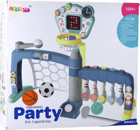 Ontdek plezier en beweging in één – het multifunctionele 5-in-1 sportdoel voor kinderen vanaf 18 maanden combineert voetbal, basketbal, bowlen, golf en honkbal. Dankzij het interactieve LED-scorebord, de verstelbare hoogte van de basketbalring en de duurzame, veilige constructie stimuleert het actief spel en ontwikkelt het motoriek, coördinatie en logisch denken, zowel thuis als in de tuin.