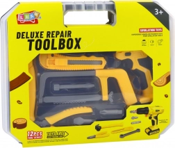 Stimuleer de fantasie en vaardigheden van je kind met een complete set voor rollenspel als reparateur. Het middelpunt is een batterij-aangedreven boor/schroevendraaier met LED-licht en geluid, die dankzij de verwisselbare opzetstukken echt gereedschap nabootst. Alles is gemaakt van duurzaam en licht kunststof, ideaal voor veilig kinderspel.