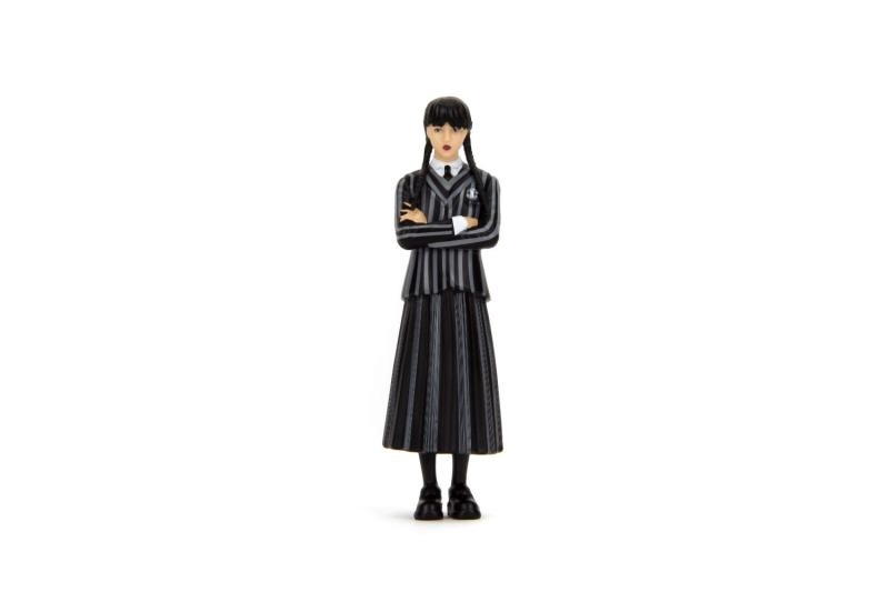 Dankzij de te openen deuren, motorkappen en vrij draaiende wielen is het model ideaal om tentoon te stellen of voor lichte speelscènes. Het meegeleverde figuur van Wednesday Addams geeft de set een uniek en thematisch karakter.