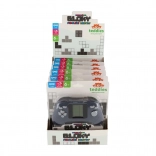 Deze digitale zakconsole in retro gamepad-stijl biedt altijd en overal veel speelplezier. Het monochrome lcd-scherm toont geliefde blokspellen, logische puzzels en snelle reactiewedstrijden. De ergonomische behuizing ligt perfect in de hand en is eenvoudig te bedienen met richtingstoetsen en functiekoppen.