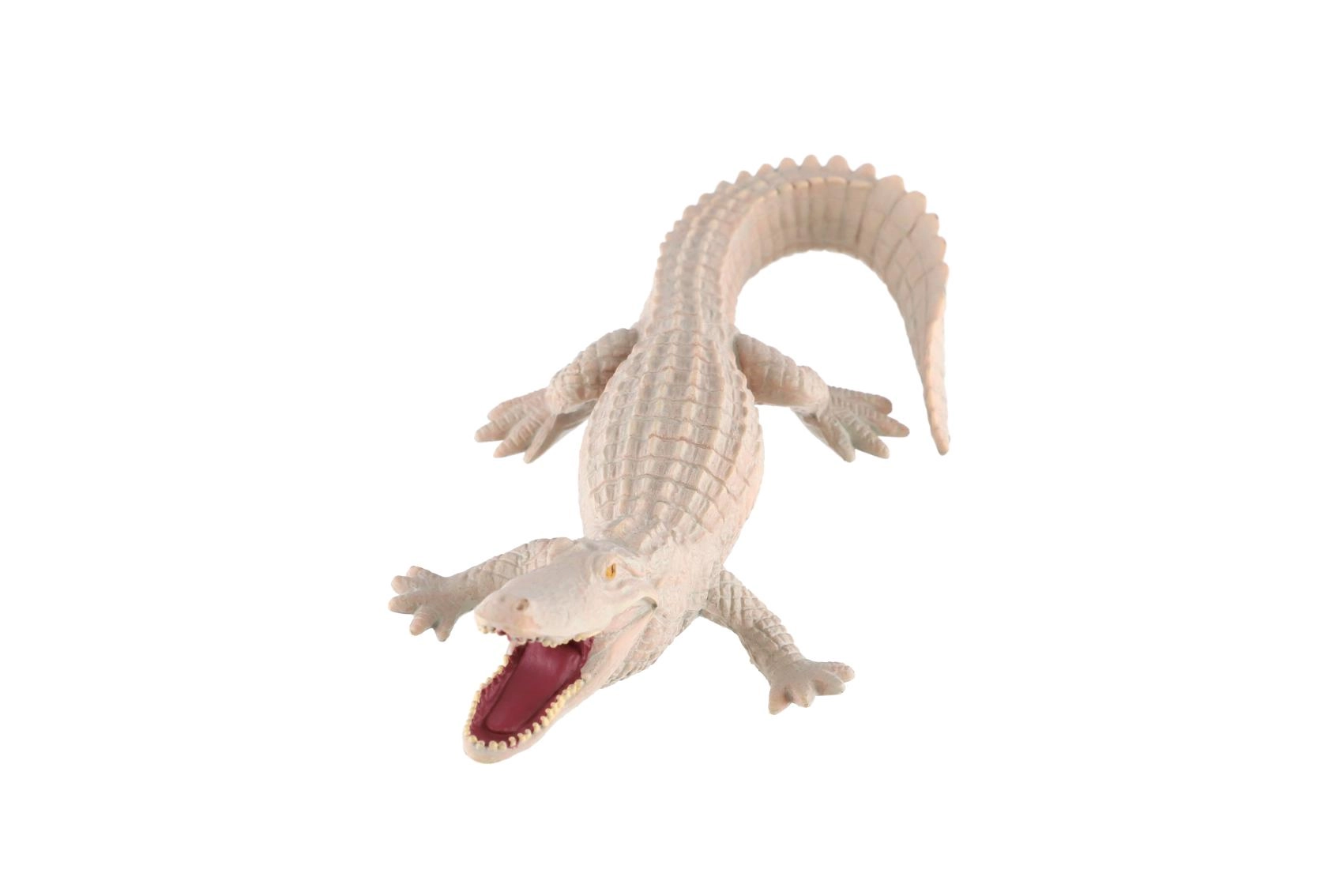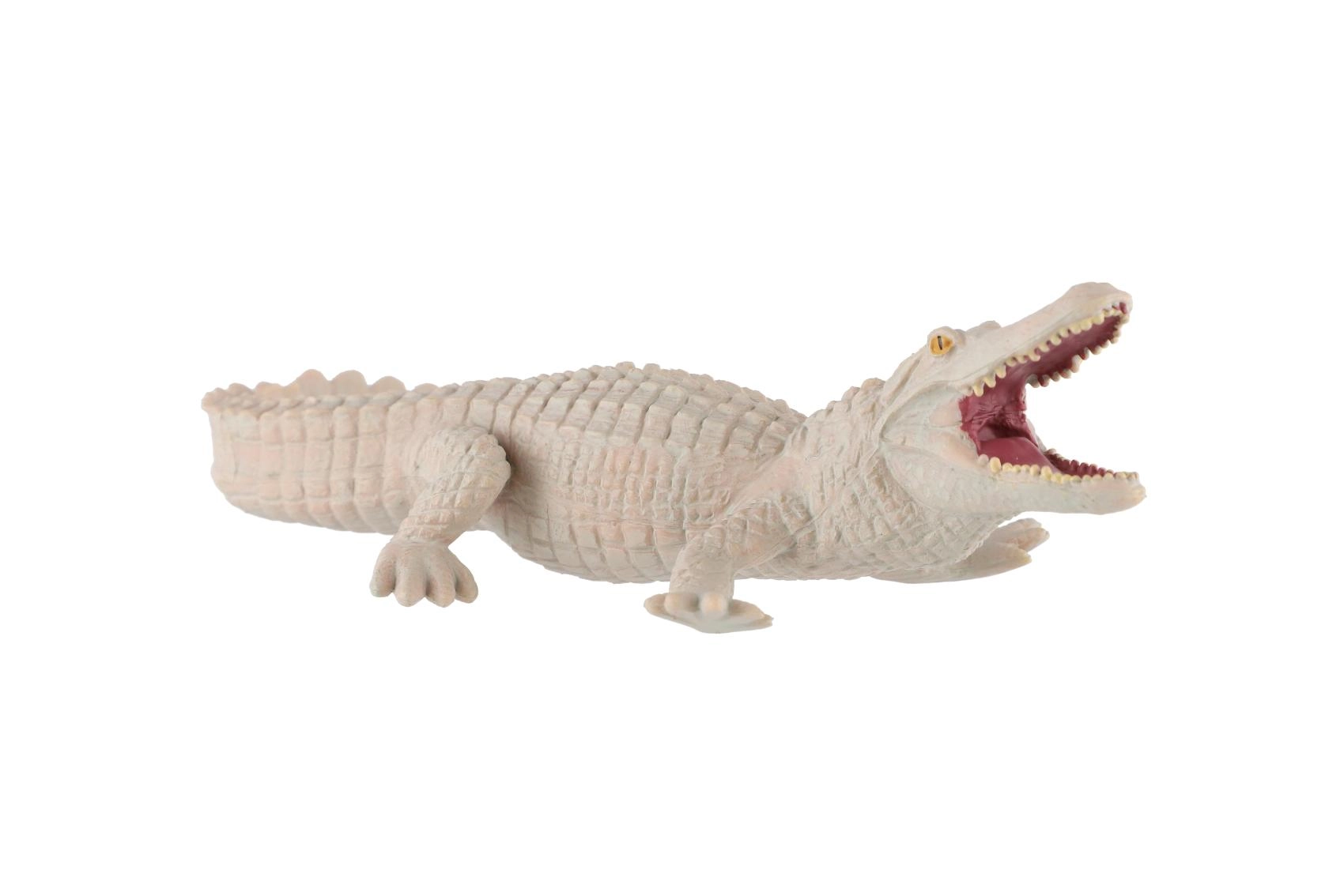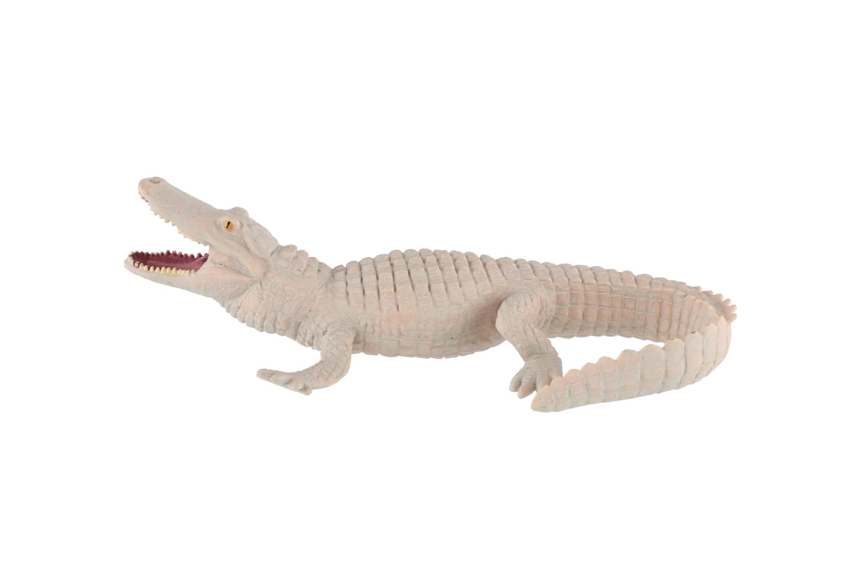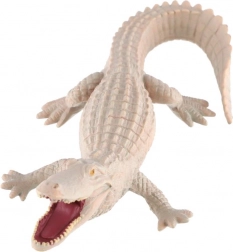 Realistisch plastic figuurtje van een witte alligator van 15 cm lang, perfect voor jonge dierenliefhebbers en verzamelaars. Hoogwaardig gedetailleerd, met getextureerde schubben, open bek met zichtbare tanden en duurzaam plastic voor spelen én leren over reptielen.