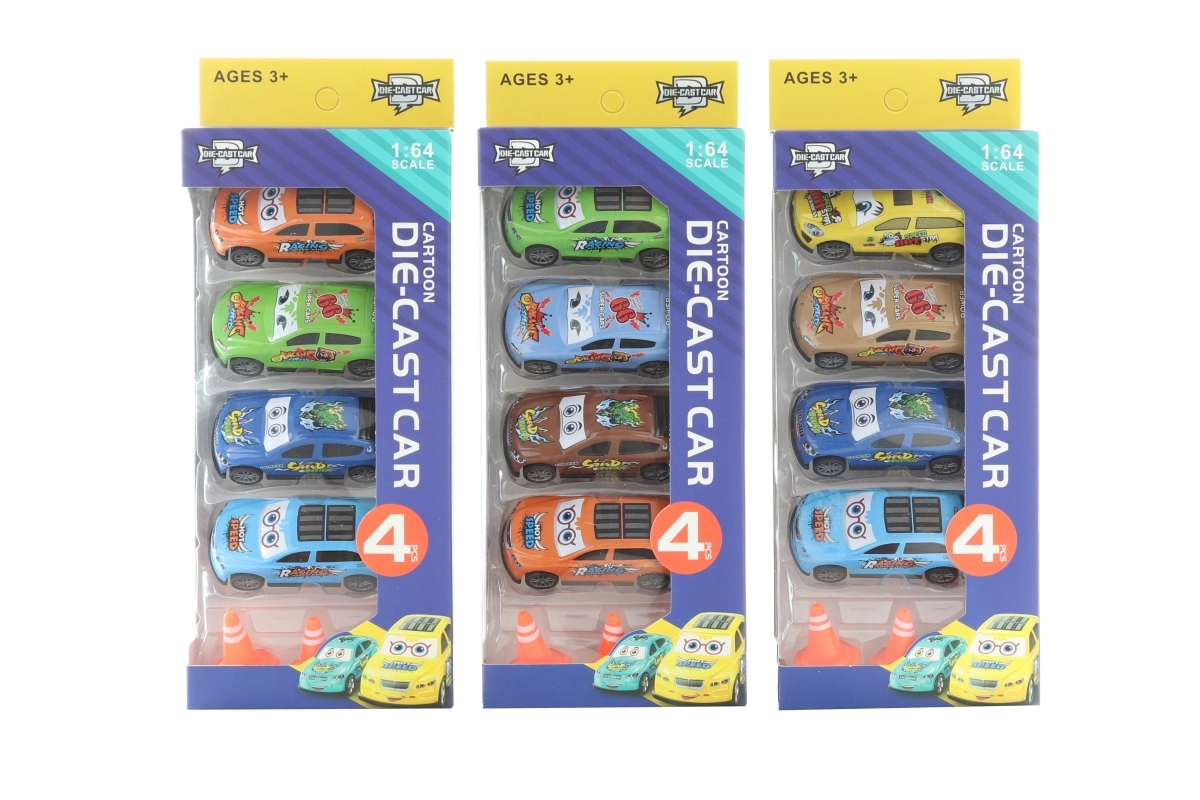 - Inhoud verpakking: 4 metalen auto’s (ca. 8 cm) + 3 kegels
