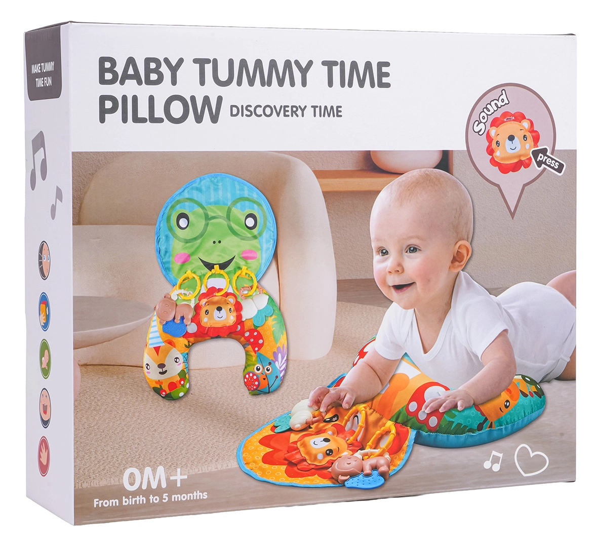 De U‑vorm van het kussen helpt kinderen comfortabel de nek- en bovenrompspieren te trainen, wat cruciaal is voor een gezonde motorische ontwikkeling vanaf de geboorte.