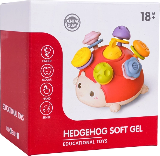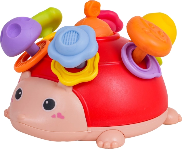 Schattige sensorische egel voor kinderen vanaf 18 maanden die de fijne motoriek, zintuiglijke waarneming en coördinatievaardigheden ontwikkelt. Heeft zachte uitsteeksels die fijn zijn bij doorkomende tandjes, gekleurde rammelringen, een knop om te drukken en te trekken, elastieken aan armen en benen voor veilig trekken en een spinner aan de onderkant voor eindeloos draaien. Gemaakt van veilige materialen zonder scherpe randen, in levendige kleuren die kinderen op een natuurlijke manier uitnodigen om te spelen.