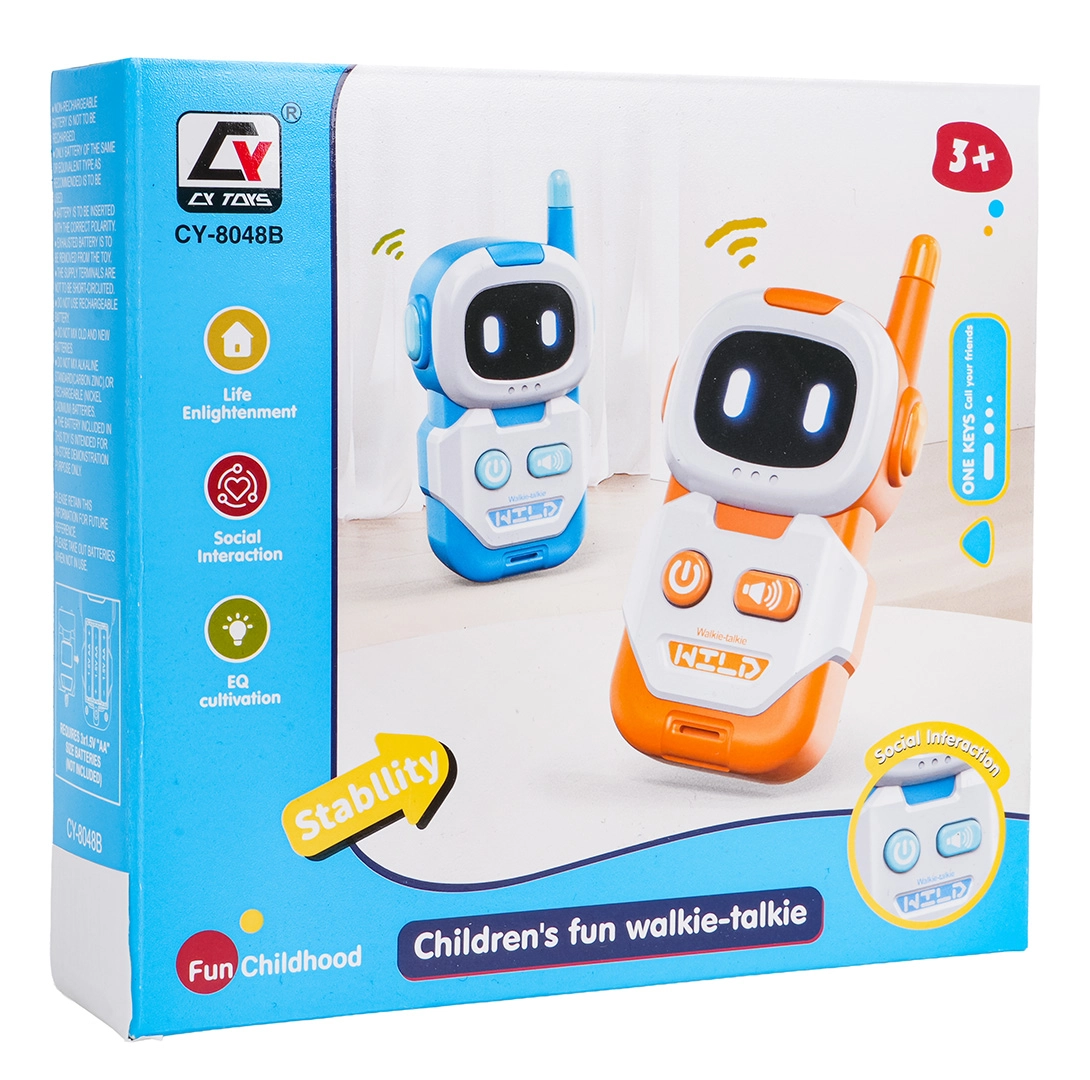 Een leuke set van twee kinder-walkietalkies in robotstijl voor kleine ontdekkers vanaf 3 jaar. Ze zijn licht en compact, liggen perfect in kleine handjes en bieden een groot bereik voor spelletjes buiten en binnen. In de verpakking zitten ook polsriempjes voor veilig dragen. Voeding via 3× AA-batterijen (per walkietalkie), niet inbegrepen.