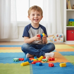 Grote onderdelen zijn gemakkelijk vast te pakken en te verbinden. Kinderen oefenen spelenderwijs hun greep, oog‑handcoördinatie en ontwikkelen creativiteit bij het bouwen van eenvoudige modellen.