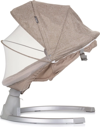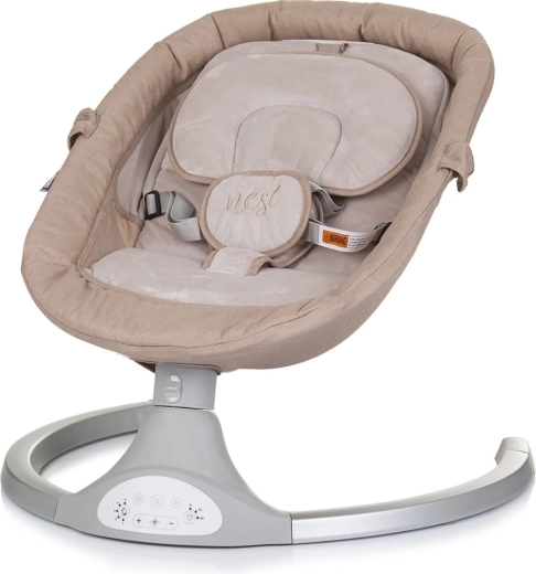 De elektrische wieg Nest Macadamia is ontworpen voor pasgeborenen tot 6 maanden (max. 9 kg) en biedt een rustige, natuurlijke schommelbeweging. Het stabiele metalen frame zorgt voor veiligheid, terwijl de zachte bekleding en het ondersteunende kussentje comfort en de juiste ondersteuning van het hoofdje bieden. De kap met pluche speeltjes stimuleert de zintuiglijke ontwikkeling en het muskietennet beschermt tegen insecten, zowel thuis als op het terras.