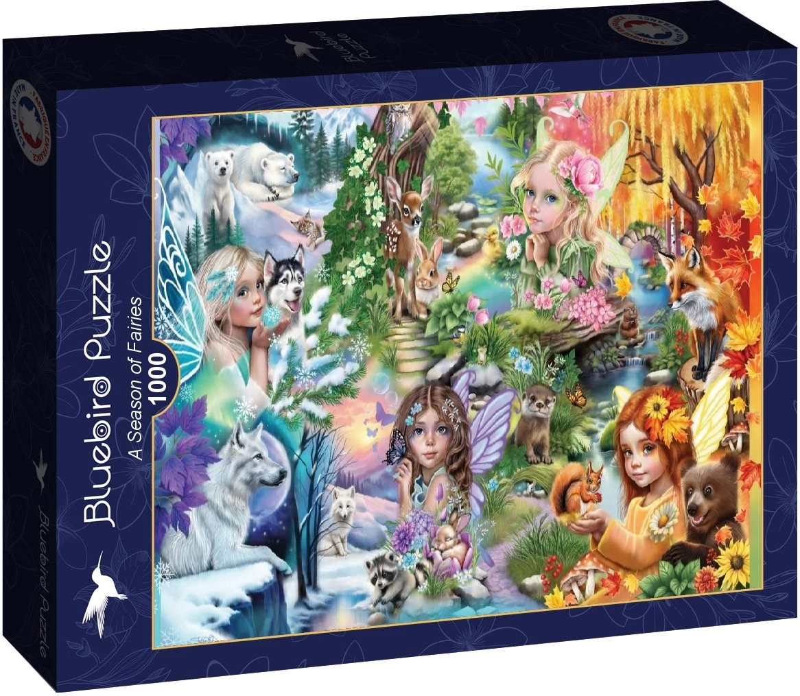 Ontdek de magie van de fantasie met deze hoogwaardige puzzel van het merk BLUEBIRD. De set met 1000 stukjes biedt het betoverende motief Seizoenen van de feeën en vormt na het leggen een afbeelding van ca. 69 × 47,8 cm. Een geweldige keuze voor ontspanning, het trainen van geduld en het oefenen van concentratie.