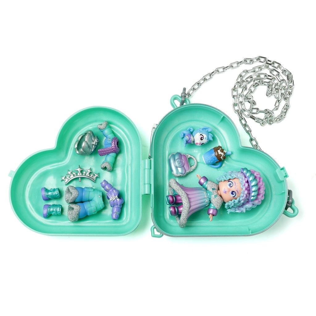 Dankzij 3 unieke gezichtsuitdrukkingen die je met één klik verandert, stem je de make-up gemakkelijk af op de gekozen stijl. Neem alles mee in de praktische hartvormige handtas – ruim genoeg voor de pop, het huisdiertje en alle mode-items.