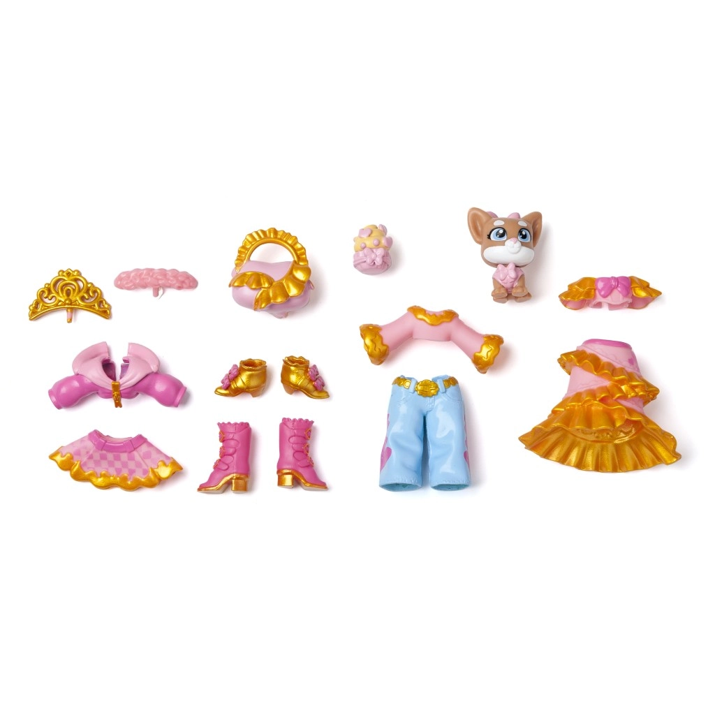 - 1 pop Taylor, 3 outfits, 2 paar schoenen, 2 tiara’s, snack, huisdiertje, hartvormige tas/opbergdoos