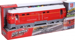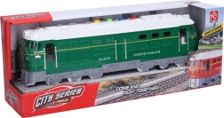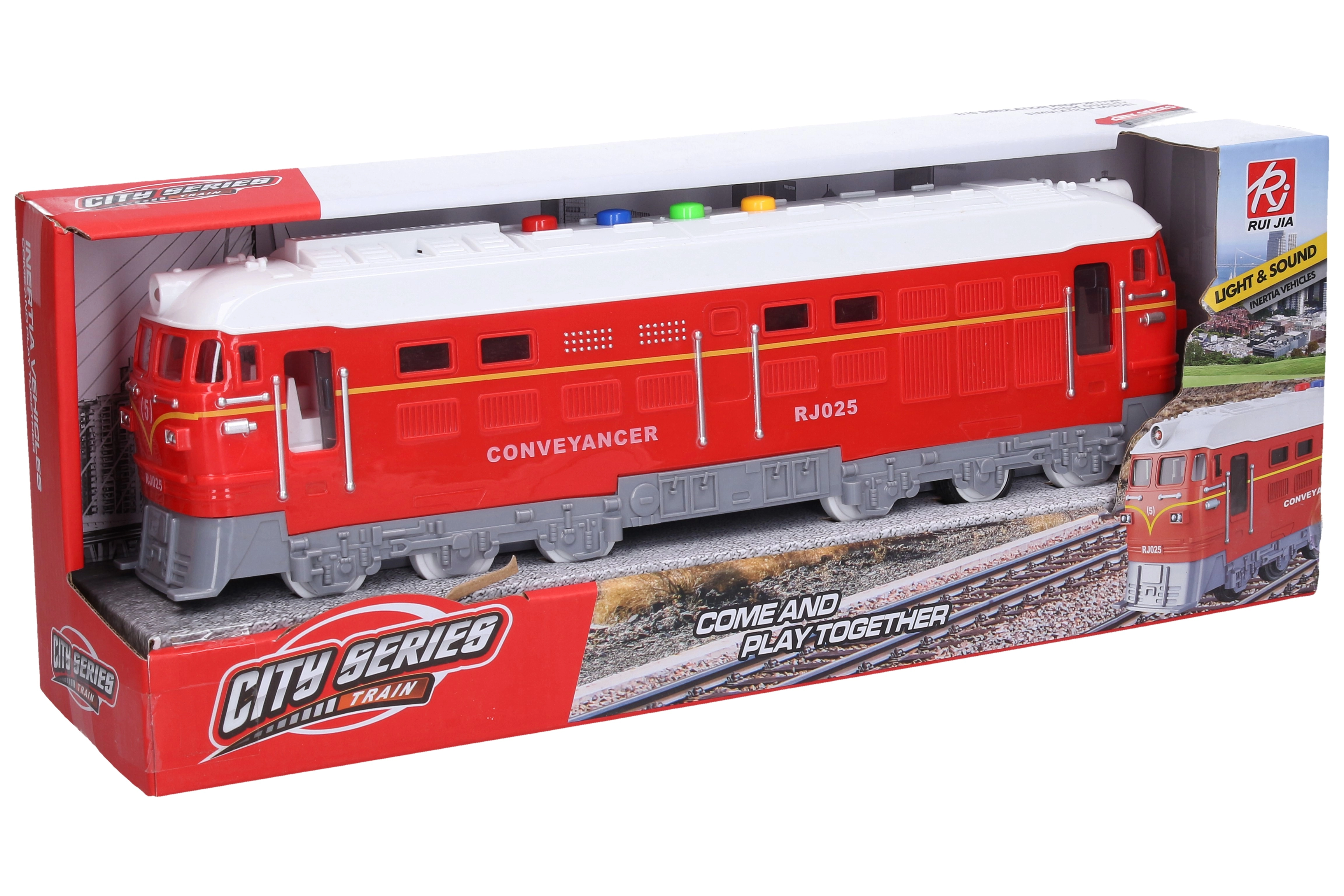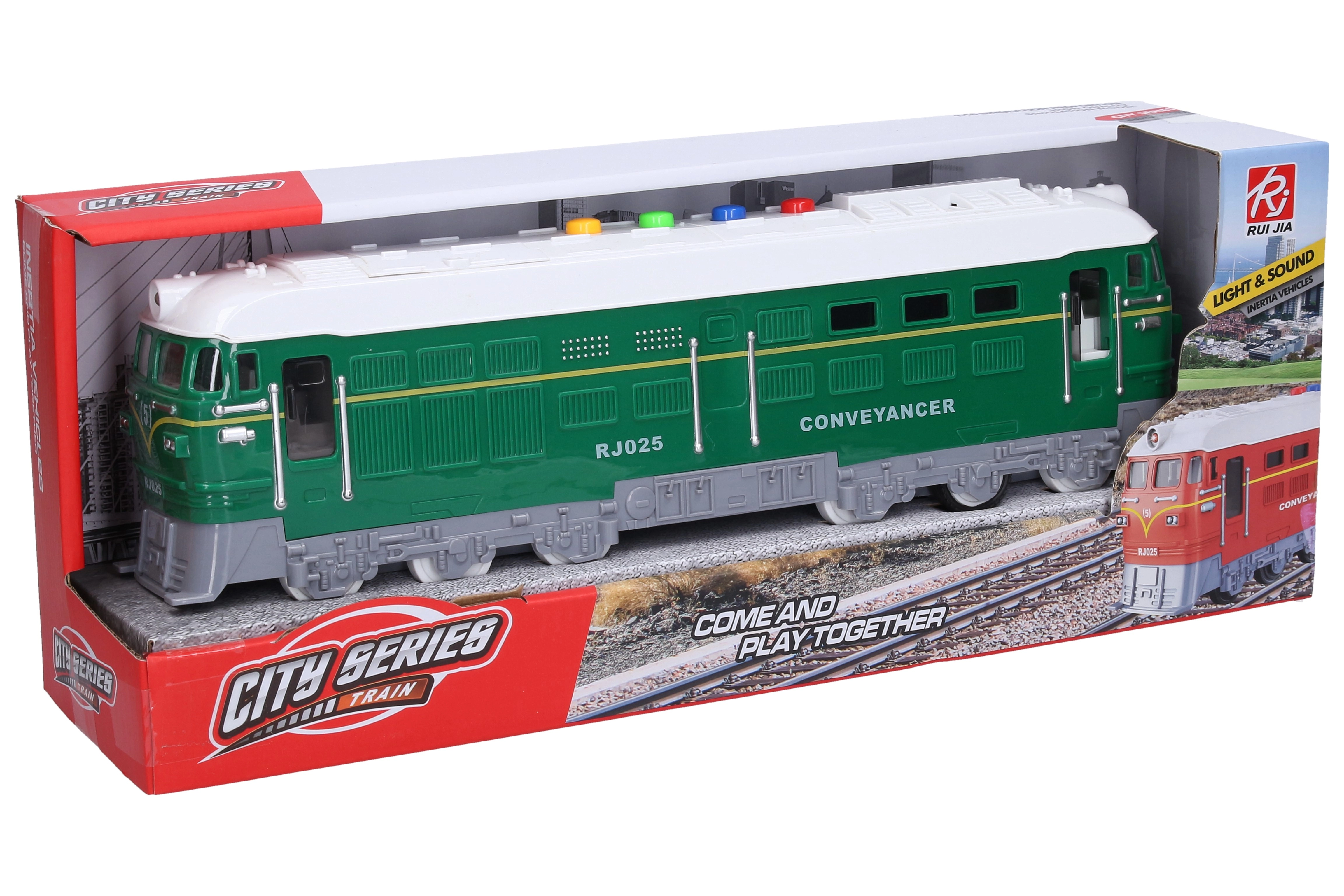 Een leuke trein met vliegwielaandrijving van 34 cm die kinderen verrast met licht- en geluidseffecten. Eenvoudige bediening via knoppen op het dak, twee kleurvarianten – groen en rood. Voeding 3× AAA (niet inbegrepen).