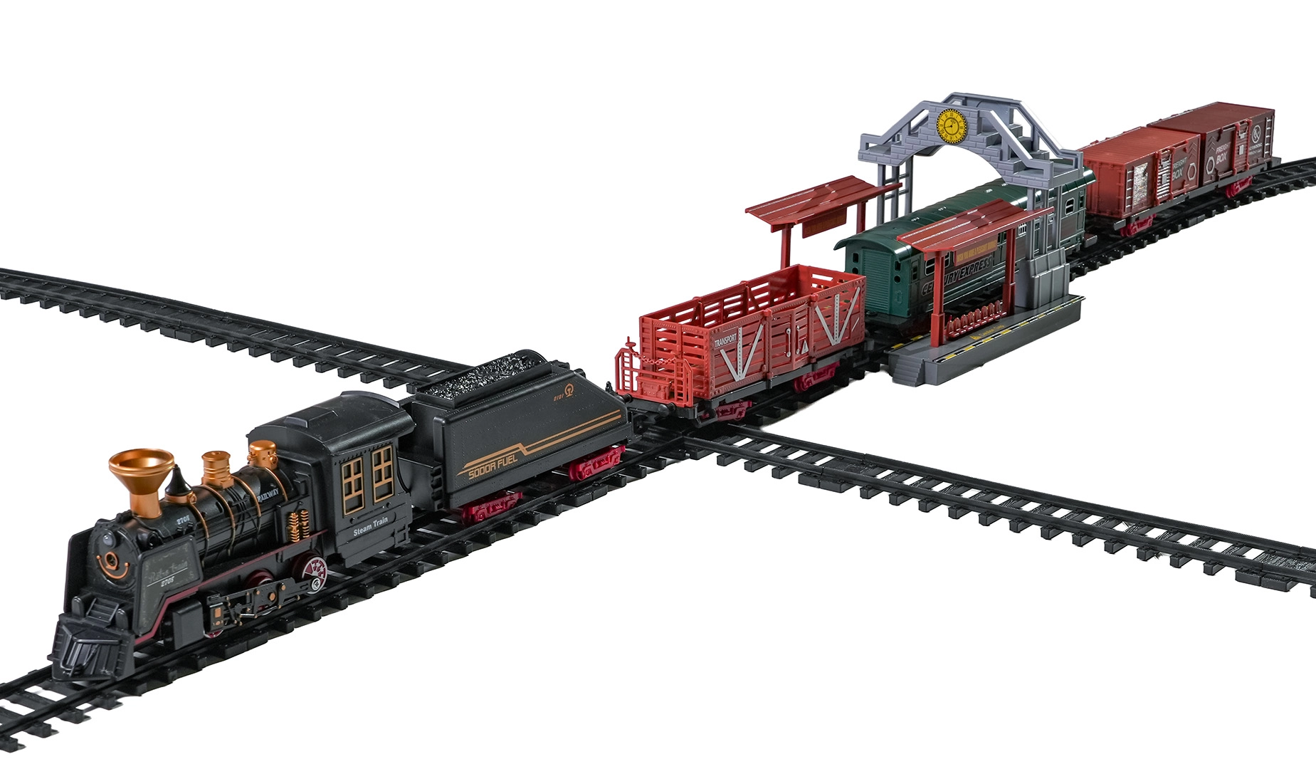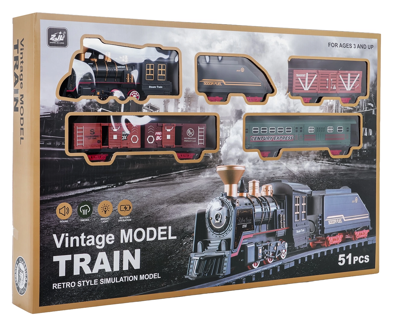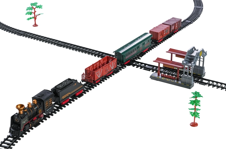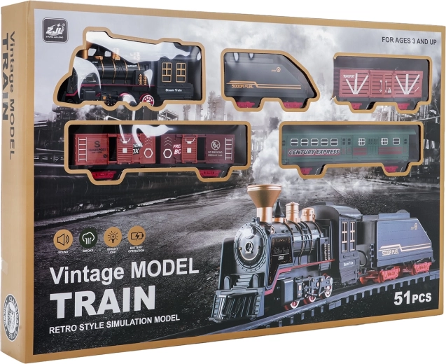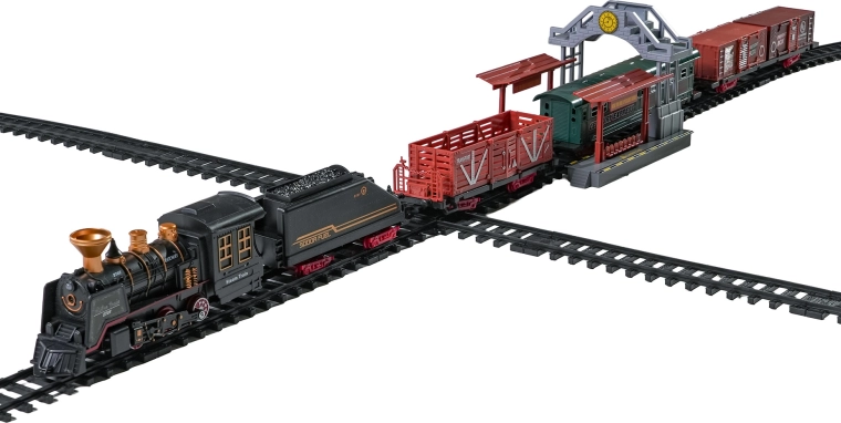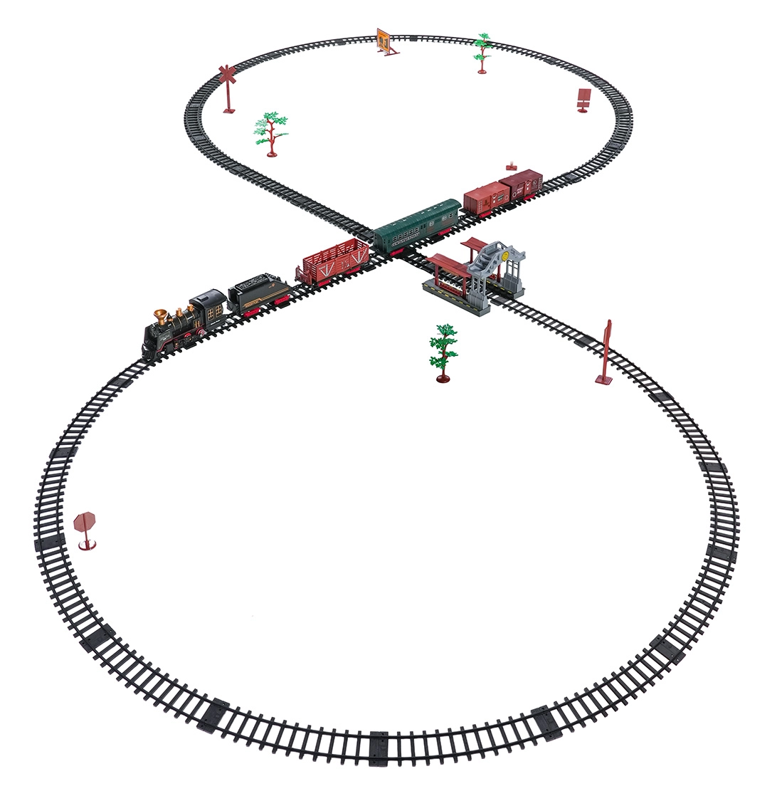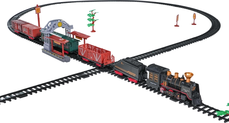 Deze gedetailleerd vormgegeven trein in vintagestijl biedt kinderen een authentieke rijbeleving. Na het bijvullen van water met het meegeleverde pipetje rookt de locomotief zachtjes uit de schoorsteen tijdens het rijden, brandt het frontlicht en klinken realistische geluideffecten. Dankzij de robuuste, veilige en modulaire rails bouwen kinderen gemakkelijk een baan en zetten ze de trein in beweging.