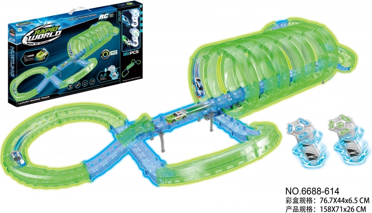 - Licht in het donker – fluorescerend spoor en LED-auto’s voor geweldige effecten.