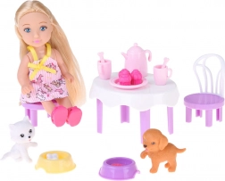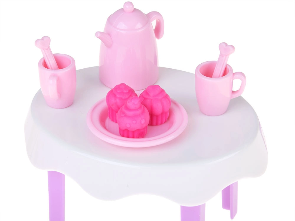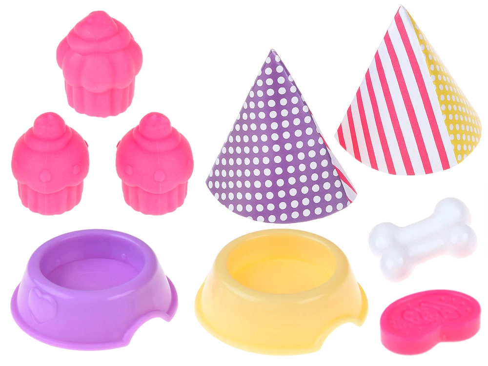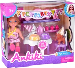 De Ankiki Pet Party-set verandert elke dag in een vrolijk verjaardagsfeest. Kinderen kunnen de pop aan het tafeltje zetten, thee schenken uit het roze theeservies, lekkernijen en cupcakes uitdelen en zorgen voor twee schattige huisdiertjes – een witte kat en een bruine hond. Pastelkleuren en een vriendelijke vormgeving prikkelen de fantasie en creëren een zachte speelsfeer.