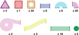- 100 onderdelen: magnetische tegels, hellingen en buizen