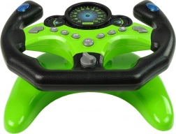 Interactief stuur voor kinderen met lichteffecten, realistische geluiden en een set sleutels met afstandsbediening biedt een leuke rij-simulatie. Kinderen trainen hun oog-handcoördinatie, ontwikkelen creativiteit en maken kennis met de basisfuncties van een auto. Groen-zwart design, ergonomische grepen en zuignappen voor stabiele bevestiging op tafel zorgen voor comfortabel spelen.
