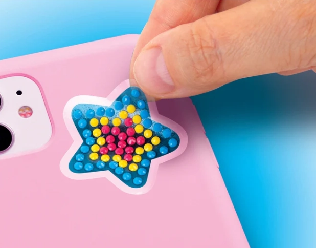 Ontdek de creatieve set voor kinderen vanaf 7 jaar: met een eenvoudige techniek maak je sprankelende 3D-stickers met steentjes voor het personaliseerden van rugzakken, schriften en accessoires. De set bevat gekleurde steentjes, een speciaal pennetje voor eenvoudig oppakken en een geïllustreerde handleiding – alles voor comfortabel knutselen zonder batterijen.