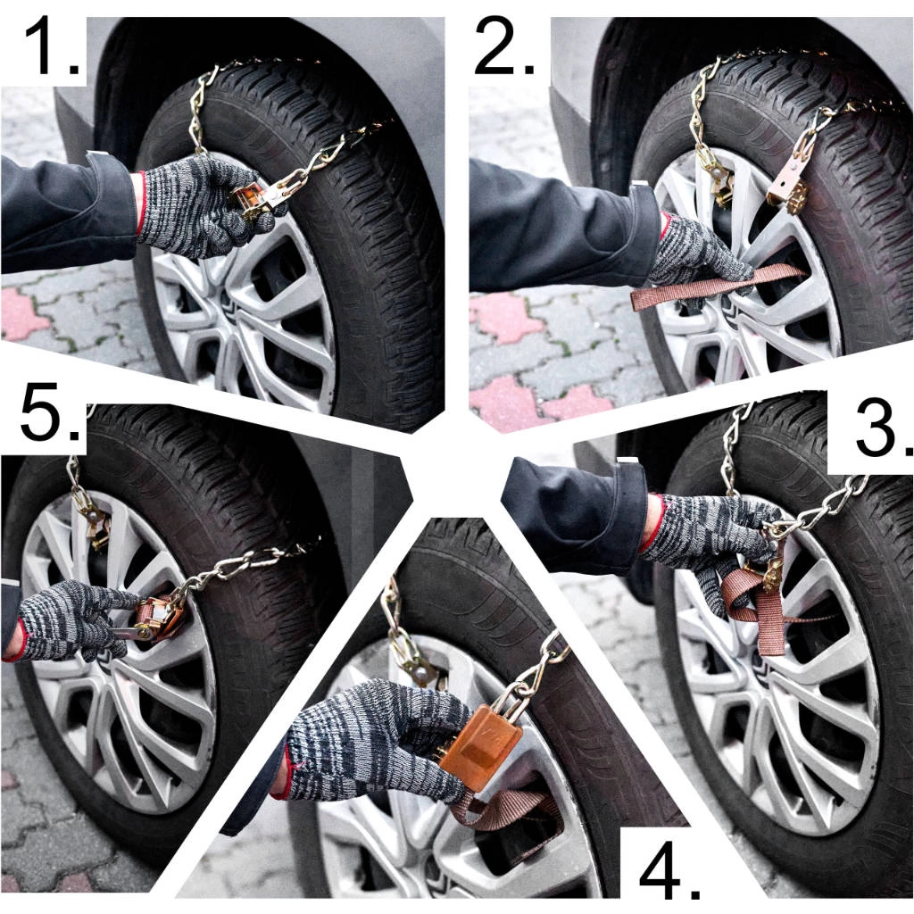 - 8× sneeuwketting, handschoenen, sleutel, opbergtas