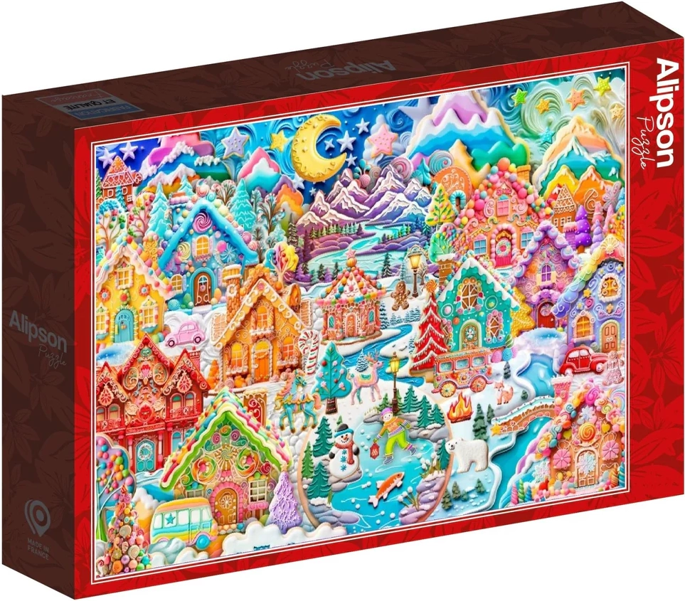 Geniet van uren ontspanning met een kwaliteits-puzzel van 1500 stukjes, die je meeneemt naar de betoverende kleurrijke nacht in Cookietown. Na het leggen ontstaat een indrukwekkend beeld met afmetingen van ca. 85 × 61 cm, ideaal om in te lijsten en je interieur te verfraaien.
