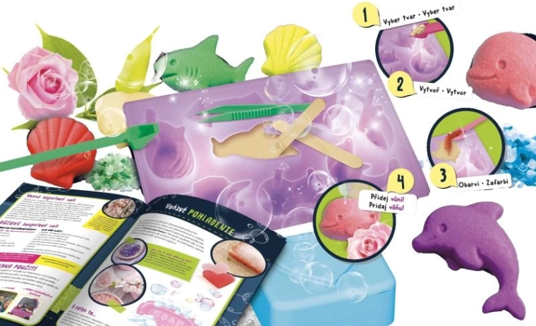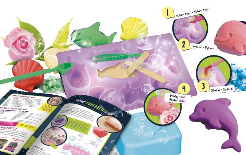 Met deze leuke en leerzame set maak je eenvoudig originele zepen met motieven van zeedieren. Dankzij de kant-en-klare mallen en glycerinevlokken is het proces simpel, veilig en snel. Voeg kleuressence en je favoriete geur toe en maak cadeaus of een geurende decoratie voor de badkamer.
