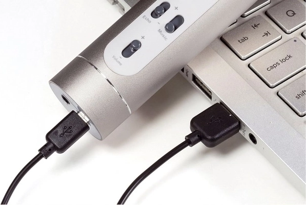 - karaoke‑microfoon, USB–Micro‑USB oplaadkabel, audiokabel, handleiding