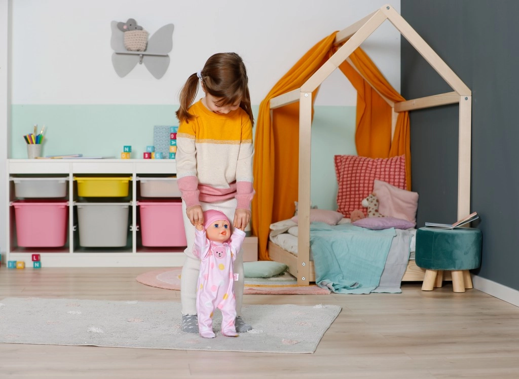 Ontdek bewegingsplezier met de BABY born Emily 43 cm, die zowel kan lopen als kruipen. Dankzij realistische bewegingen, een zacht lijfje en een vriendelijk gezicht is ze een geweldige speelkameraad voor actief spel thuis en buiten. Ze stimuleert coördinatie, fantasie en samen spelen met vriendjes.