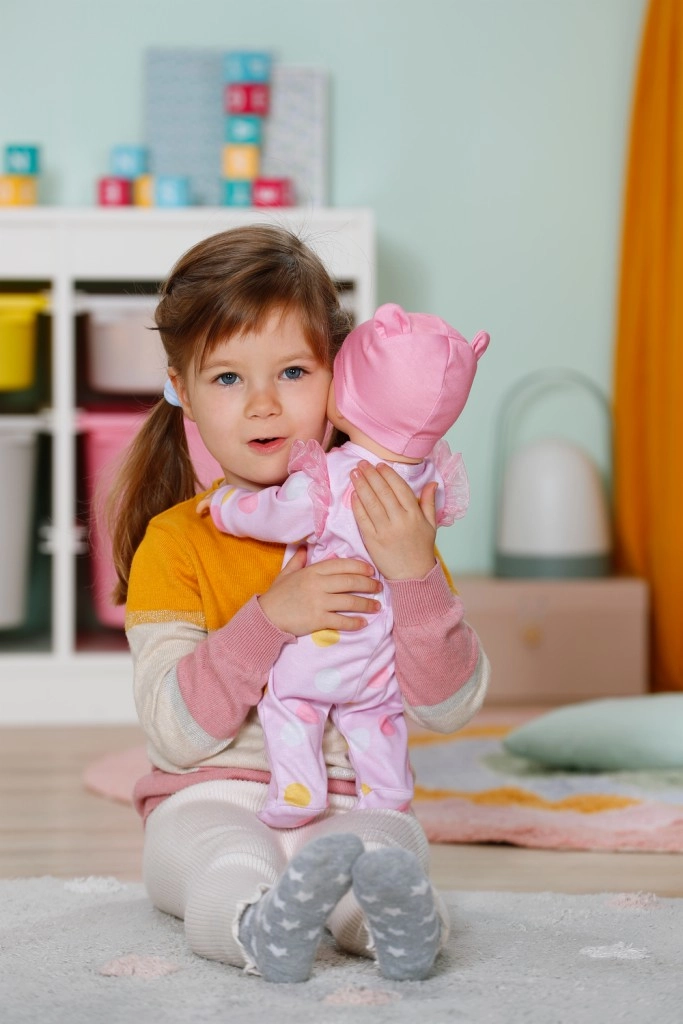 Dankzij natuurlijke verhoudingen en de schattige outfit met beertje oogt Emily levensecht en wordt ze al snel een favoriete speelkameraad voor elke dag.