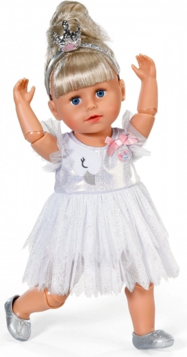 Laat elke dansvoorstelling stralen met de BABY born balletset voor poppen van 43 cm. Bevat een glinsterende witte tutu-jurk met een zwaanmotief en strikje, zilveren balletschoentjes en een kroontje voor een betoverende look. Een geweldige accessoire voor creatief en langdurig speelplezier, ook compatibel met BABY born Teddy.