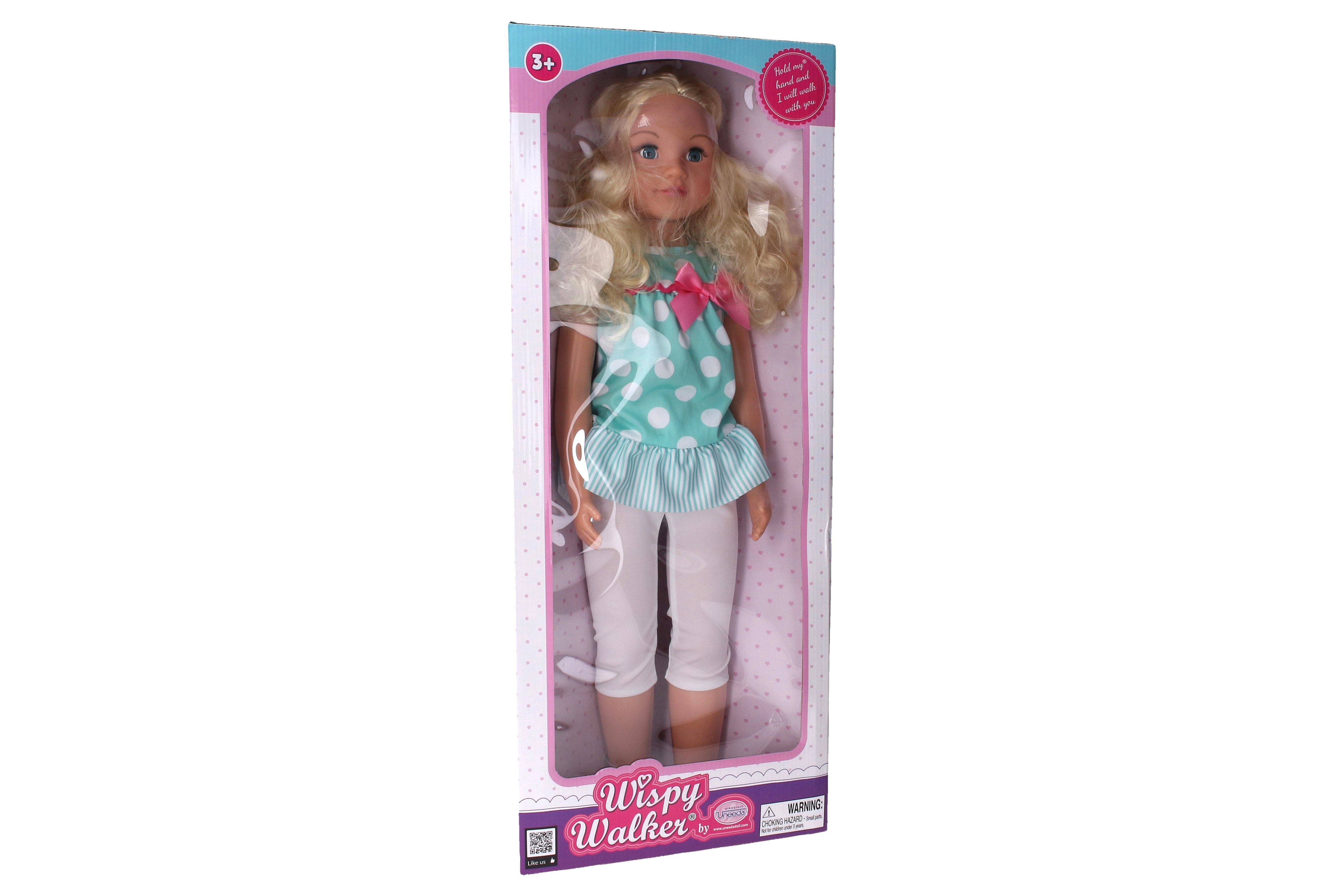 Deze grote wandelende pop is een ideale metgezel voor kleine verzorgers. Met een opvallende strik en zachte gelaatstrekken lijkt ze op een echte baby, terwijl haar knipperende ogen kinderen meenemen naar een wereld vol fantasie.