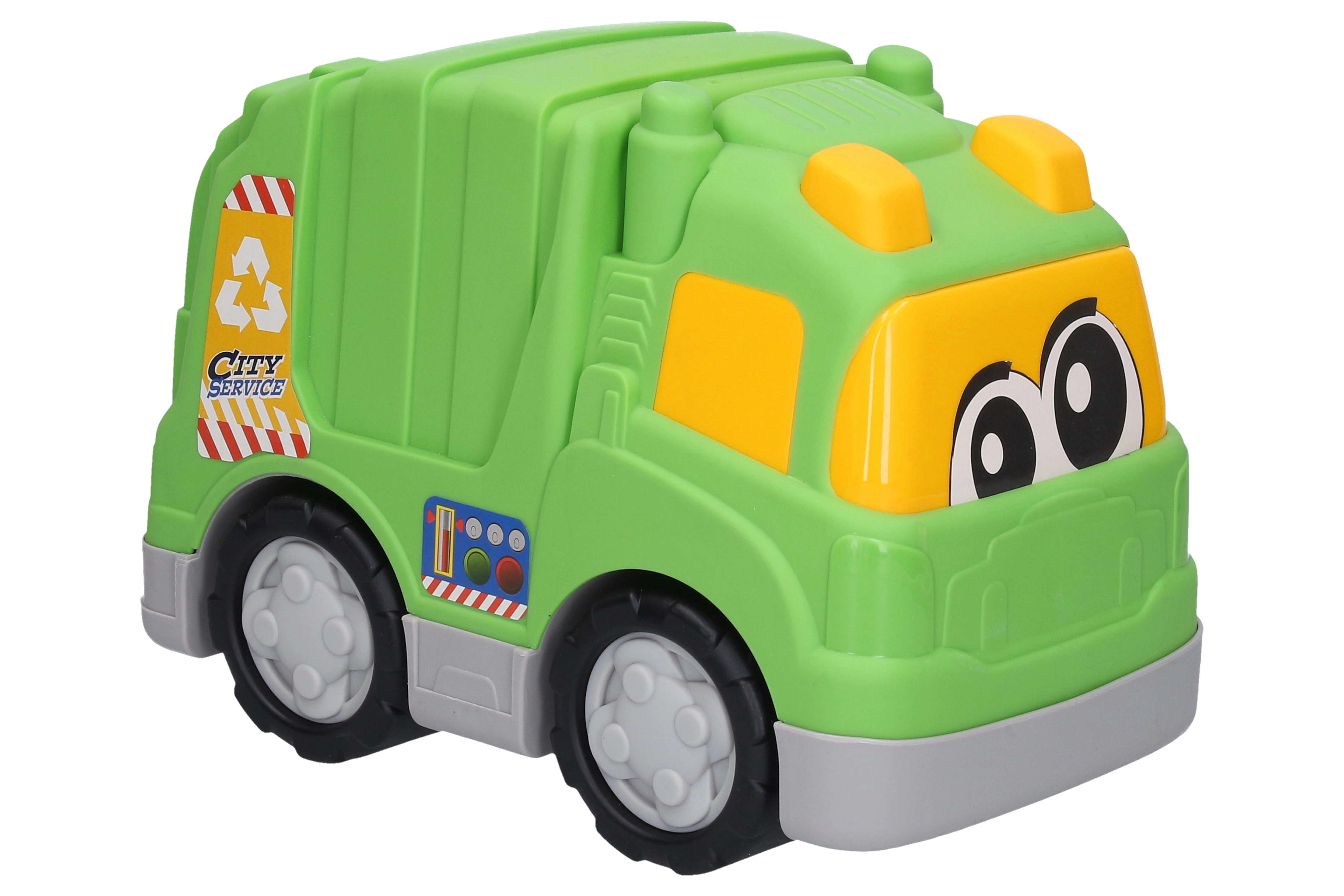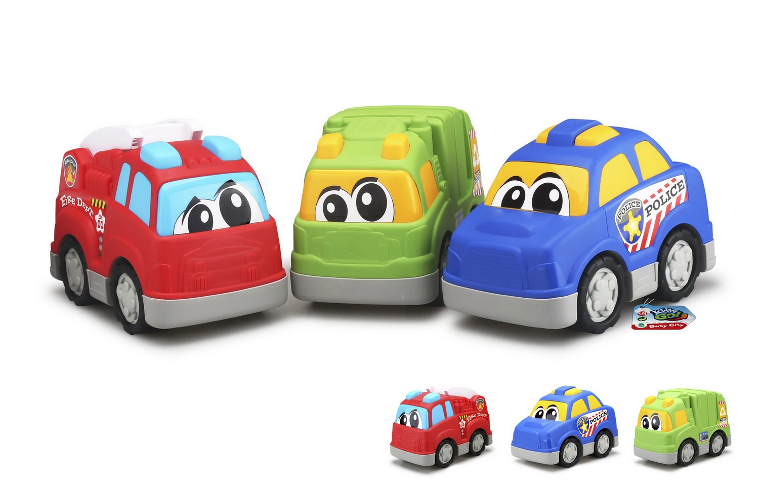 Er zijn 3 themavarianten – een vuilniswagen voor sorteren en ophalen, een brandweerwagen voor heldhaftige inzetten en een politiewagen voor het handhaven van de orde. Alle voertuigen zijn gemaakt van duurzaam, kindvriendelijk plastic en liggen goed in kleine kinderhanden.