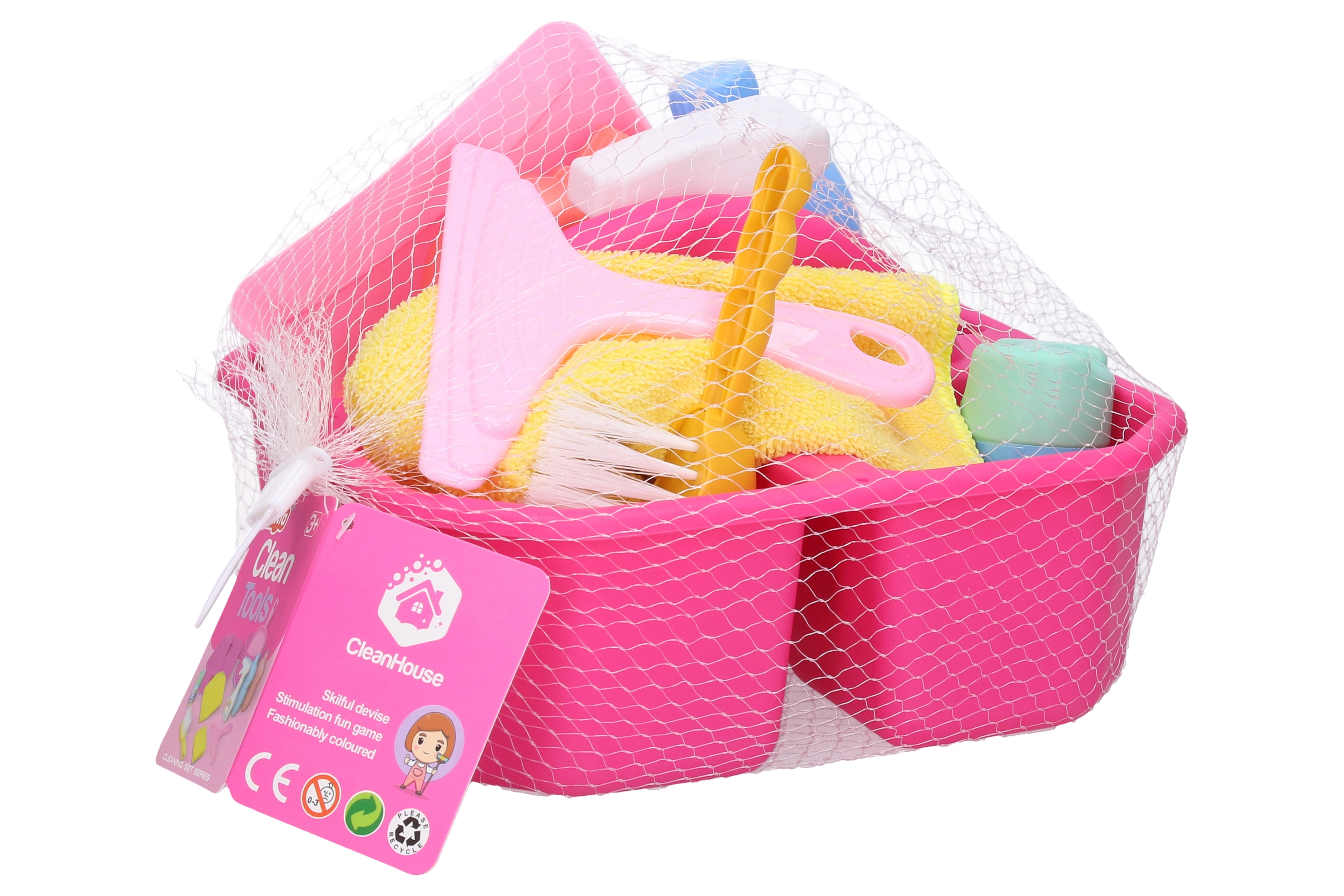 Een leuke kinder schoonmaakset van 9 stuks stimuleert de fantasie en zelfstandigheid bij het spelen van huishouden. De set bevat een praktische draagbak en veel accessoires voor kleine helpers – stoffer en blik, trekker, doekje, spons en “reinigingsmiddelen” voor realistisch speelplezier. Licht en veilig plastic, eenvoudig op te bergen in de caddy en alles altijd bij de hand.