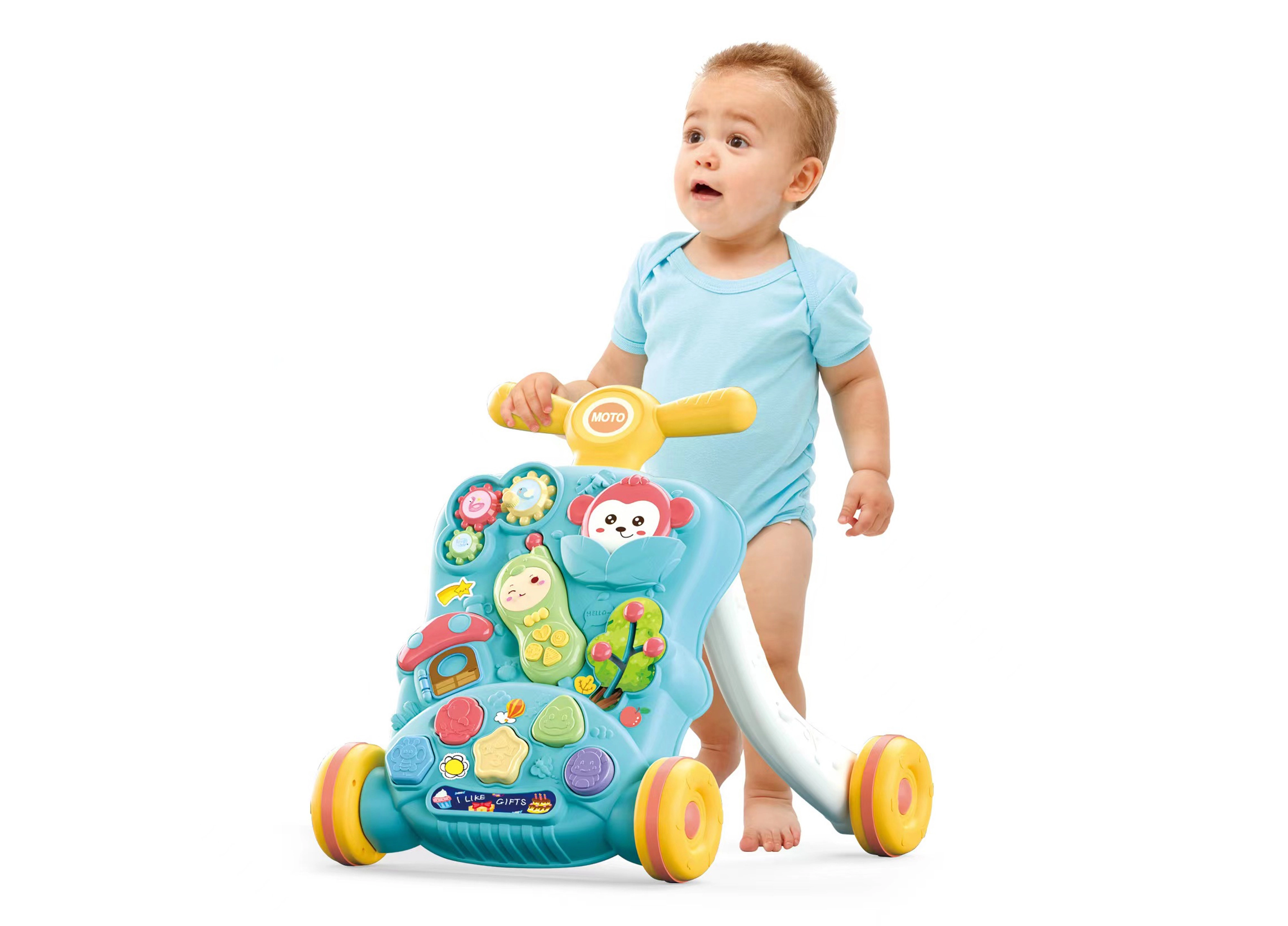 De eerste stapjes worden veiliger en leuker met deze interactieve loopwagen voor de allerkleinsten. Hij biedt een verstelbare handgreephoogte, instelbare wielweerstand voor snelheidscontrole en geluidseffecten ter motivatie. Eenvoudig te monteren volgens de instructies op de verpakking, twee kleurvarianten – blauw en roze.