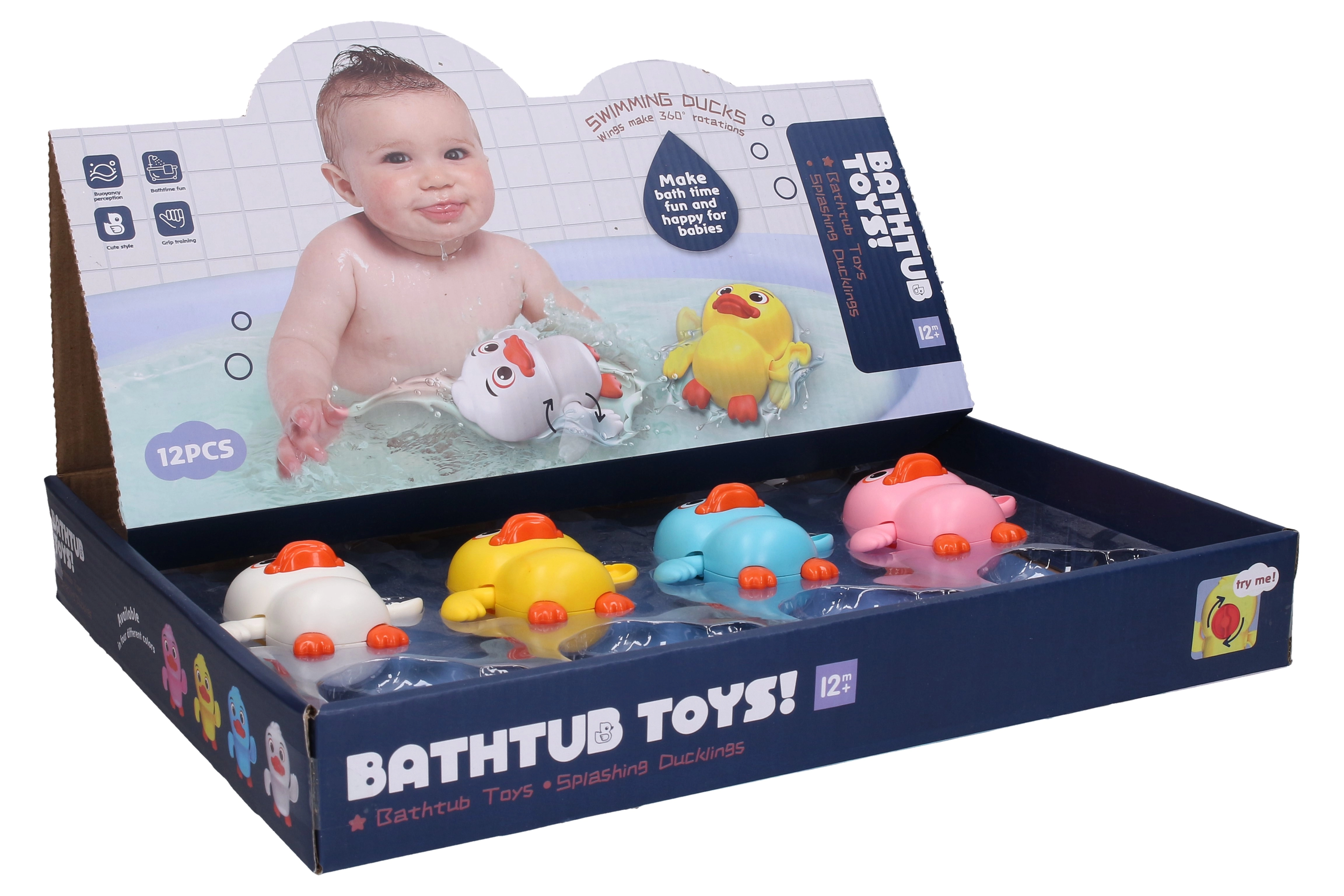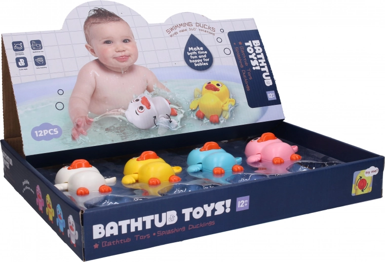 Maak badtijd leuker met een opwindbare badeend die na het draaien aan het mechanisme over het water drijft. Het compacte formaat van 9 cm ligt goed in kleine kinderhandjes en biedt veilig, eenvoudig en vrolijk speelplezier in bad of kinderzwembad.