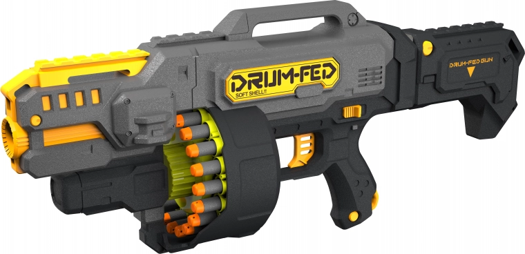 - Speelgoed-mitrailleur voor schuimkogels met trommelmagazijn