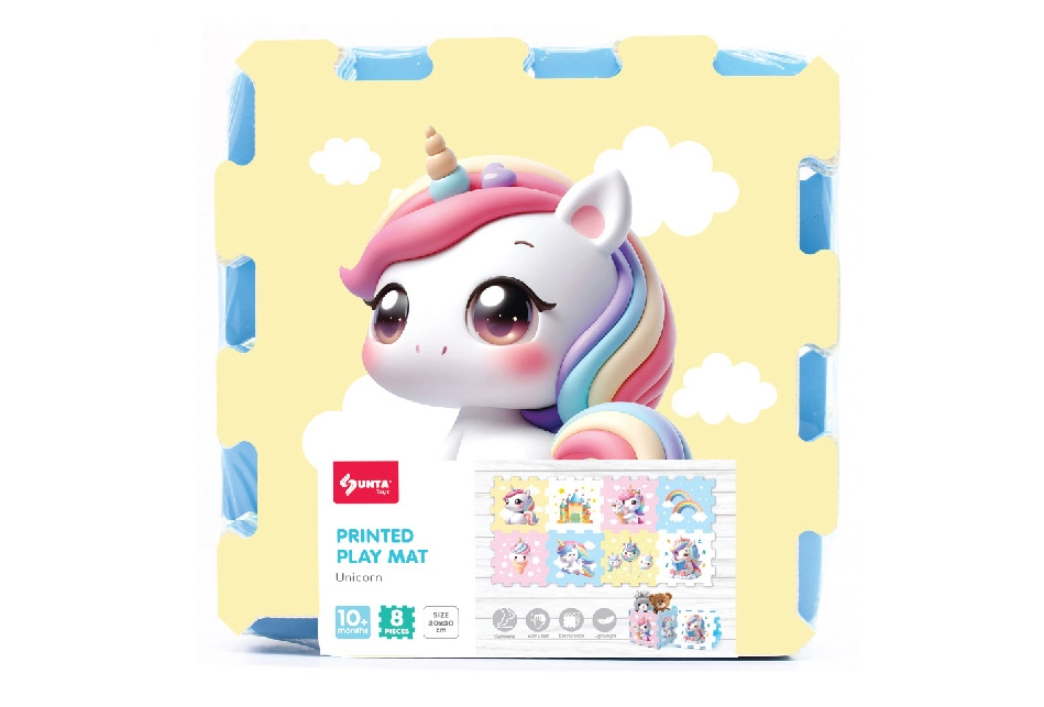 Vrolijk de kinderkamer op met een speelse en veilige set zachte schuimblokken met een eenhoornmotief. De set van 8 stuks met een afmeting van 30 × 30 × 1 cm is ideaal om mee te spelen, te puzzelen of als onderlegger. Licht, zacht en gemakkelijk schoon te maken onderdelen beschermen tegen kou en dempen schokken.
