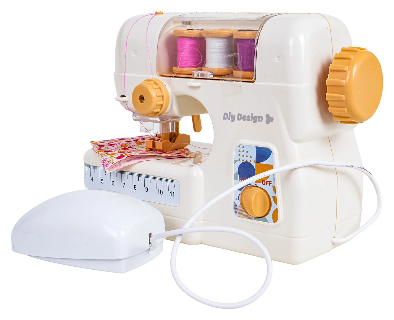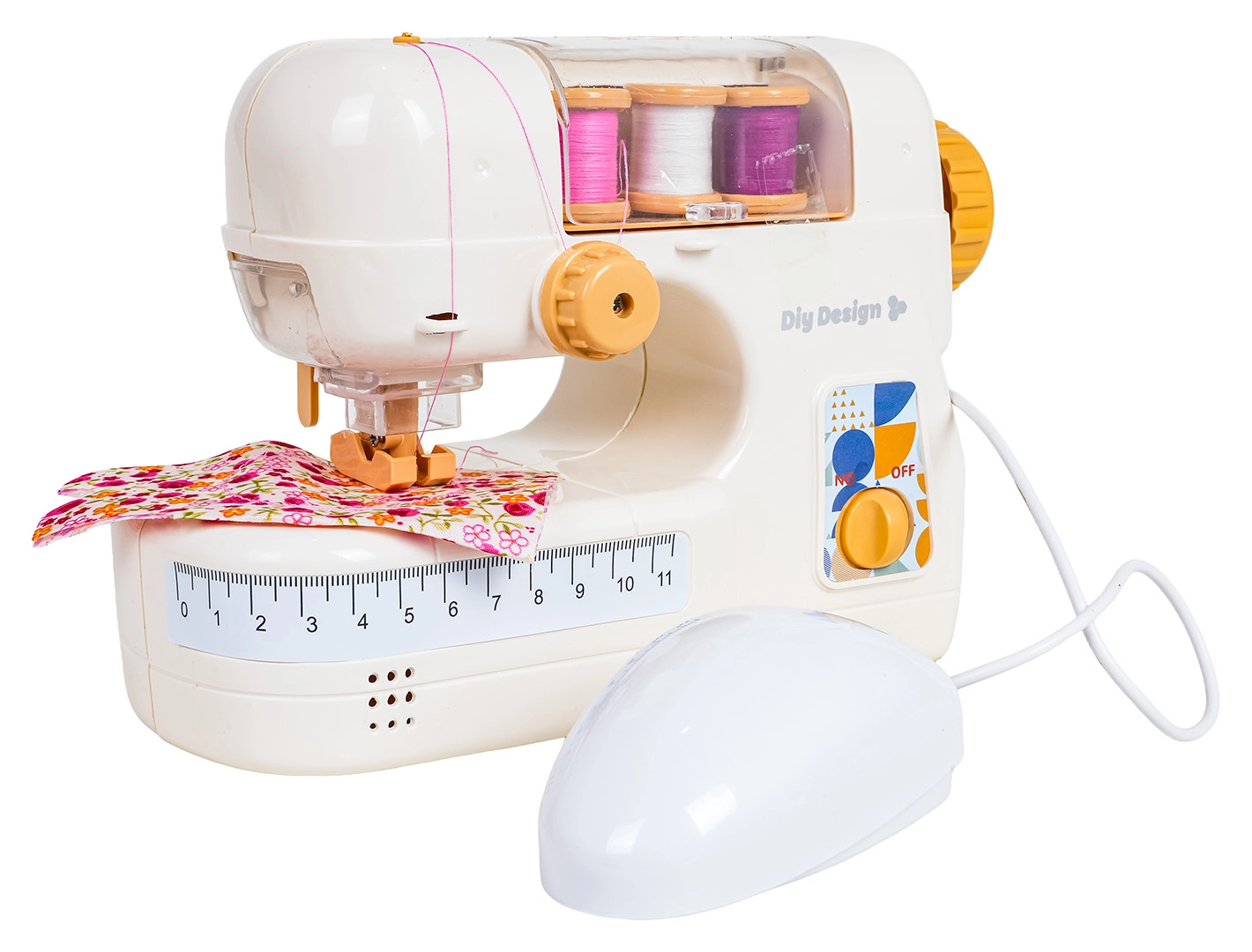 Interactieve kindernaaimachine voor kleine ontwerpers vanaf 3 jaar met licht- en geluidseffecten, een veilig afgeschermde naald en bediening met een muisvormig pedaal. Hij naait echt, stimuleert fijne motoriek en creativiteit, inclusief 3 klosjes garen en stof voor de eerste proefjes.